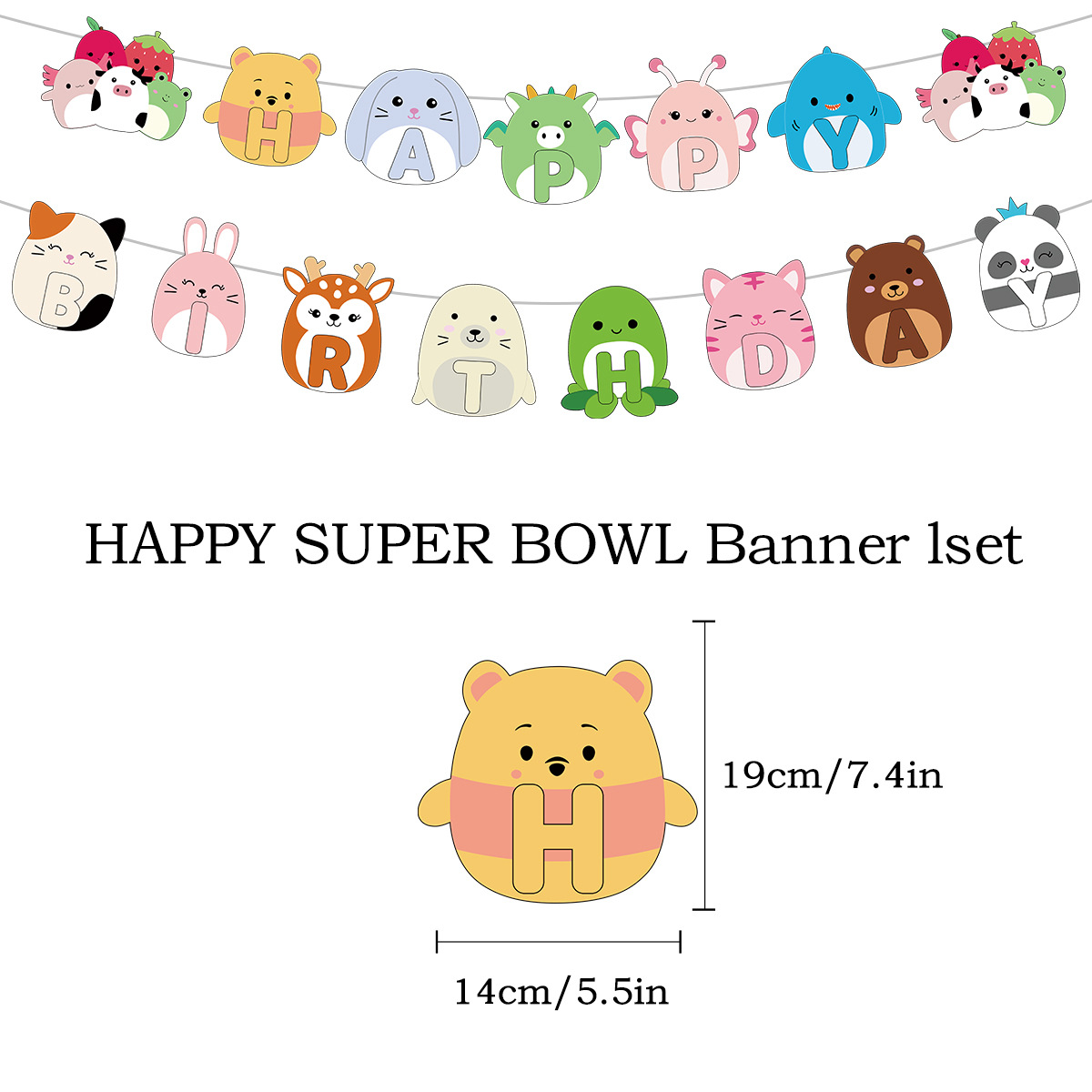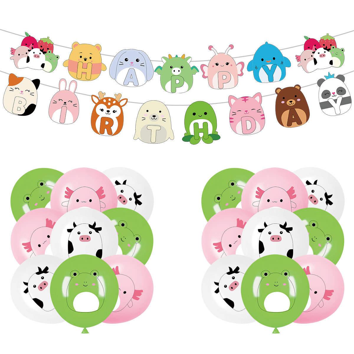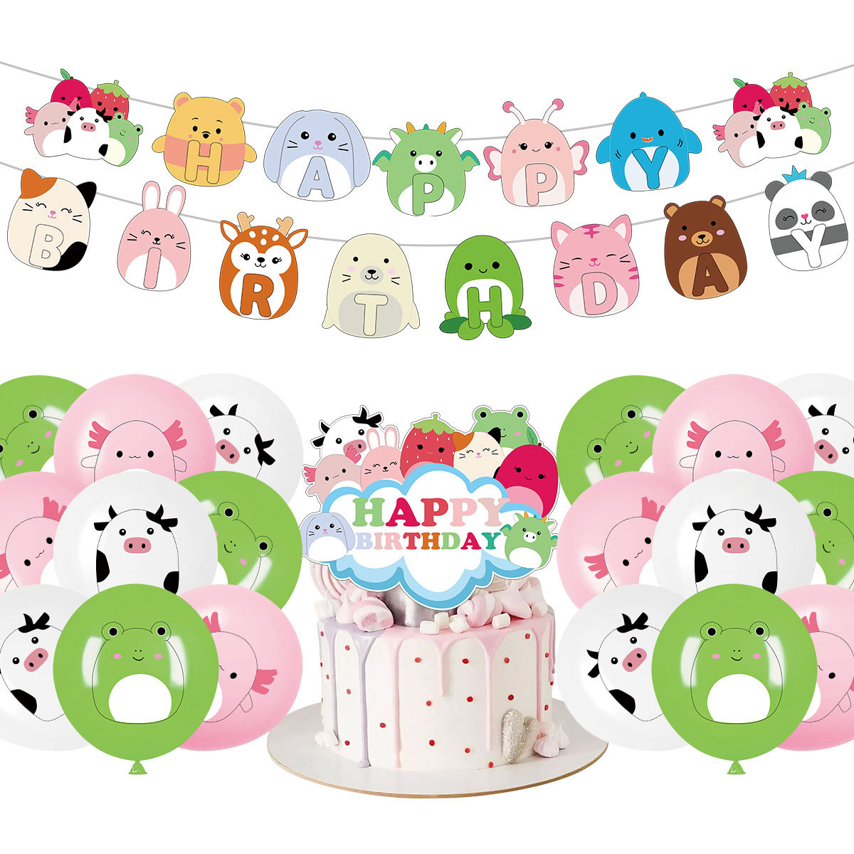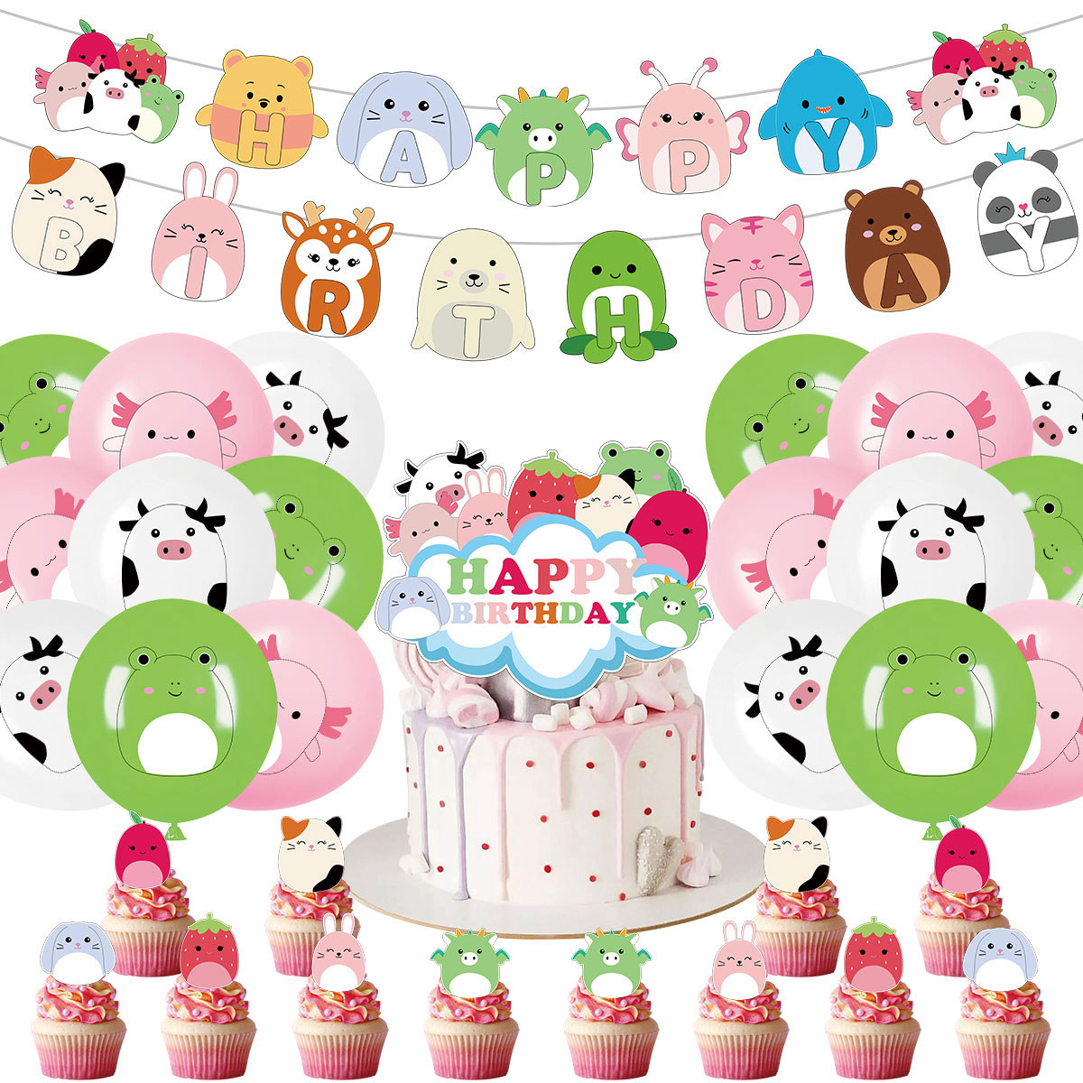 재고 squish mallows 테마 생일 파티 장식 생일 플래그 케이크 카드 풍선 파티 세트