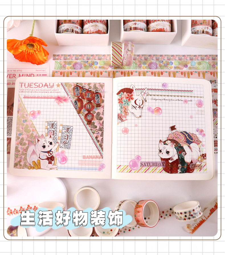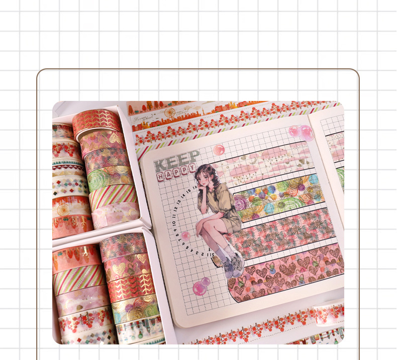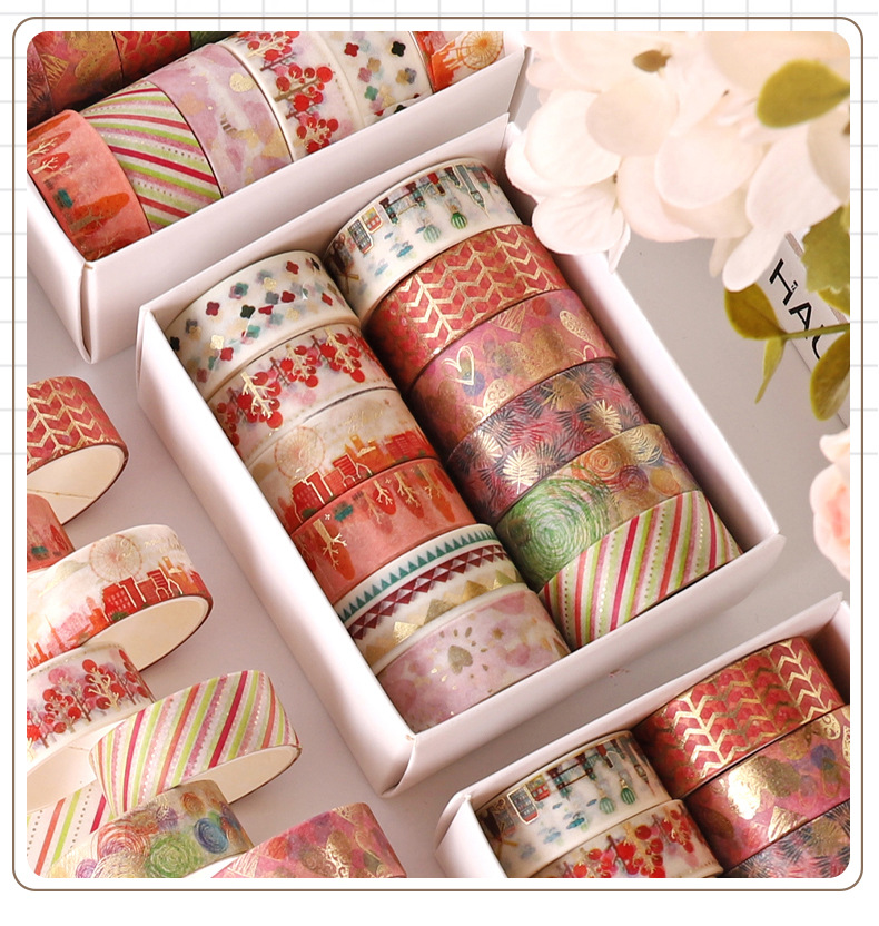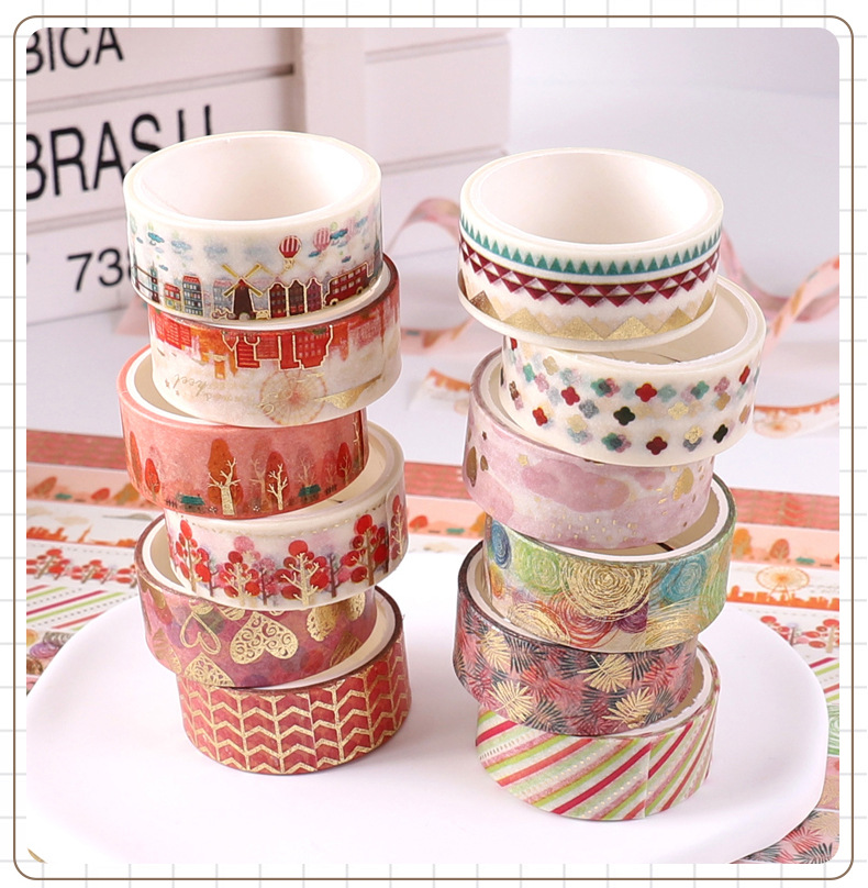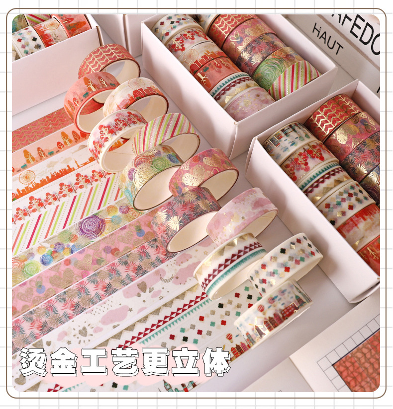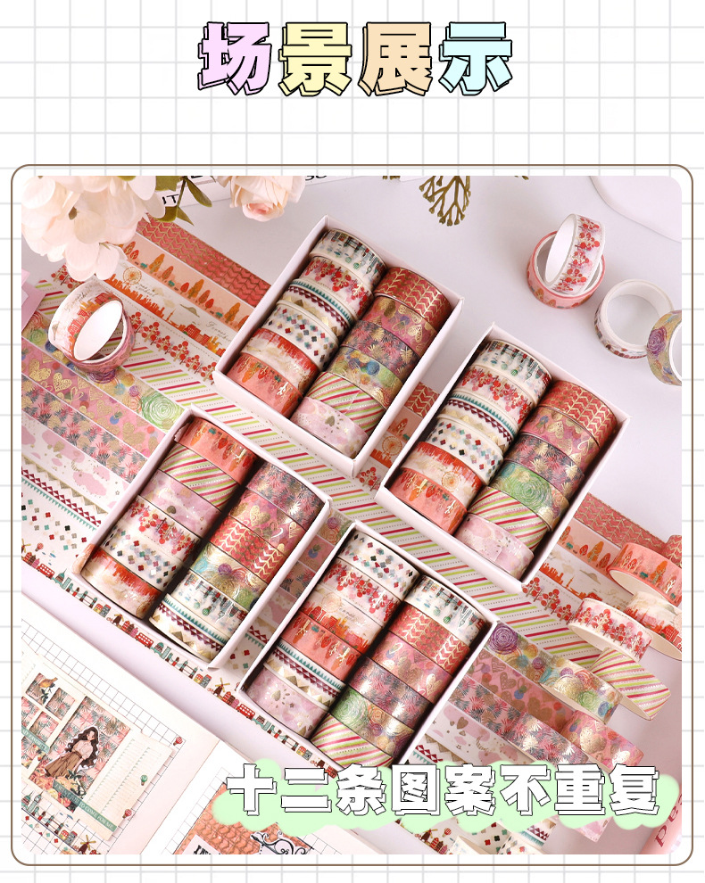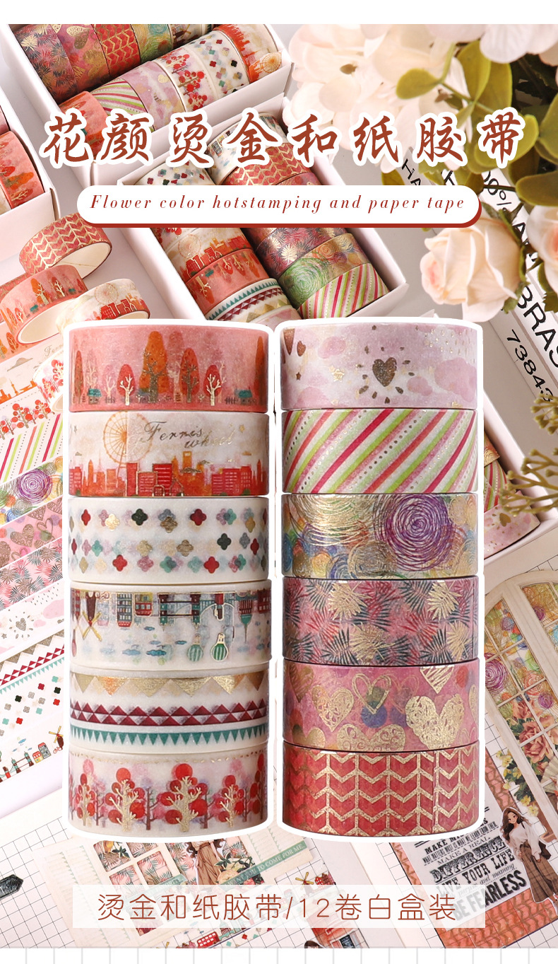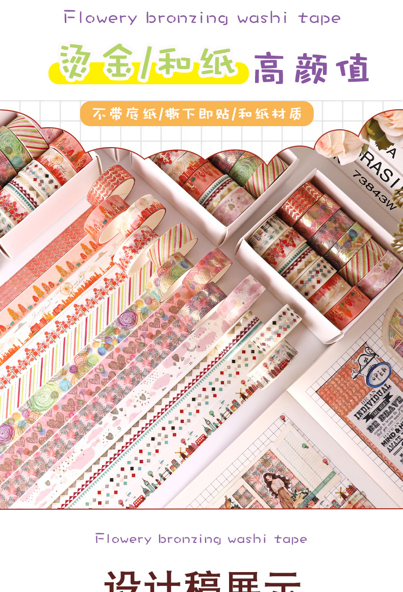 이다 크로스 보더 플라워 2.0 시리즈 청동과 종이 테이프 2M 15mm 및 종이 핸드 계정 스티커 테이프 도매스토어 가기