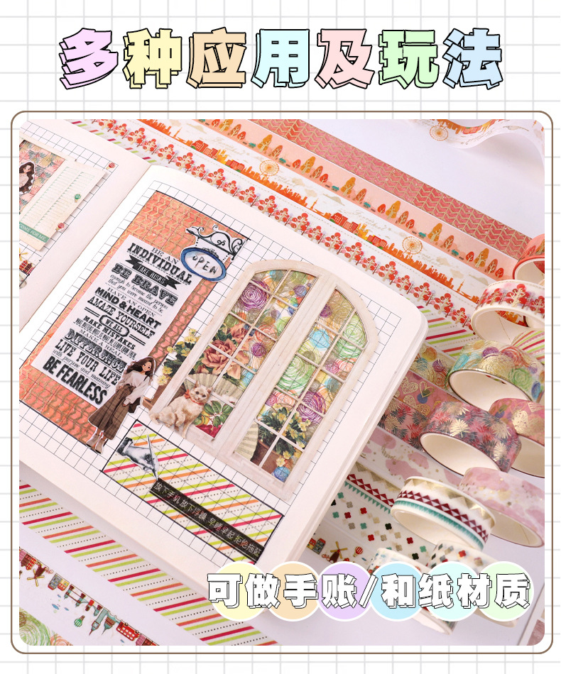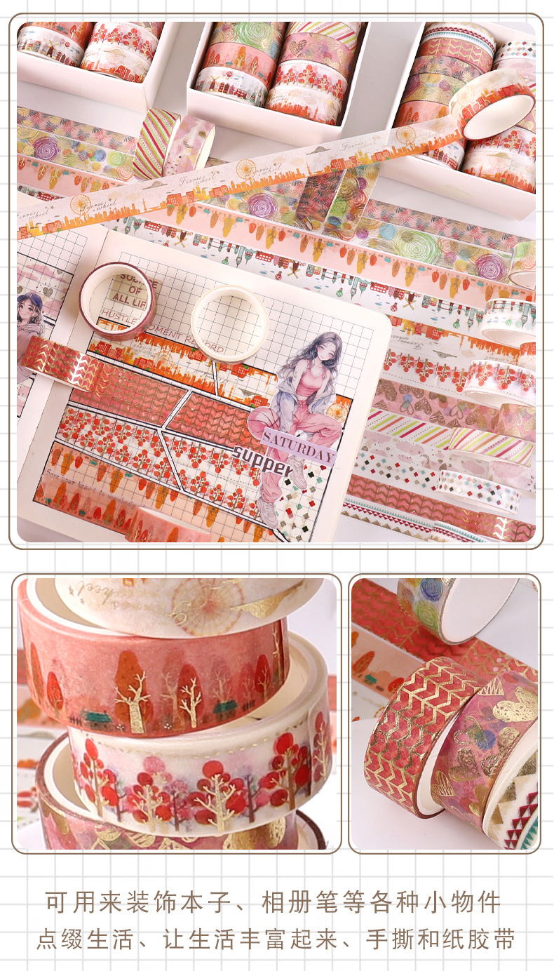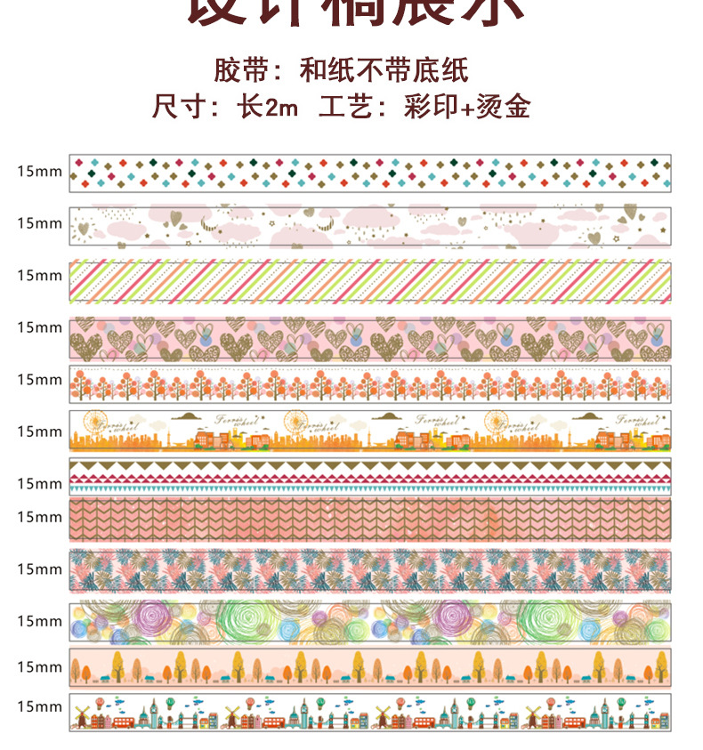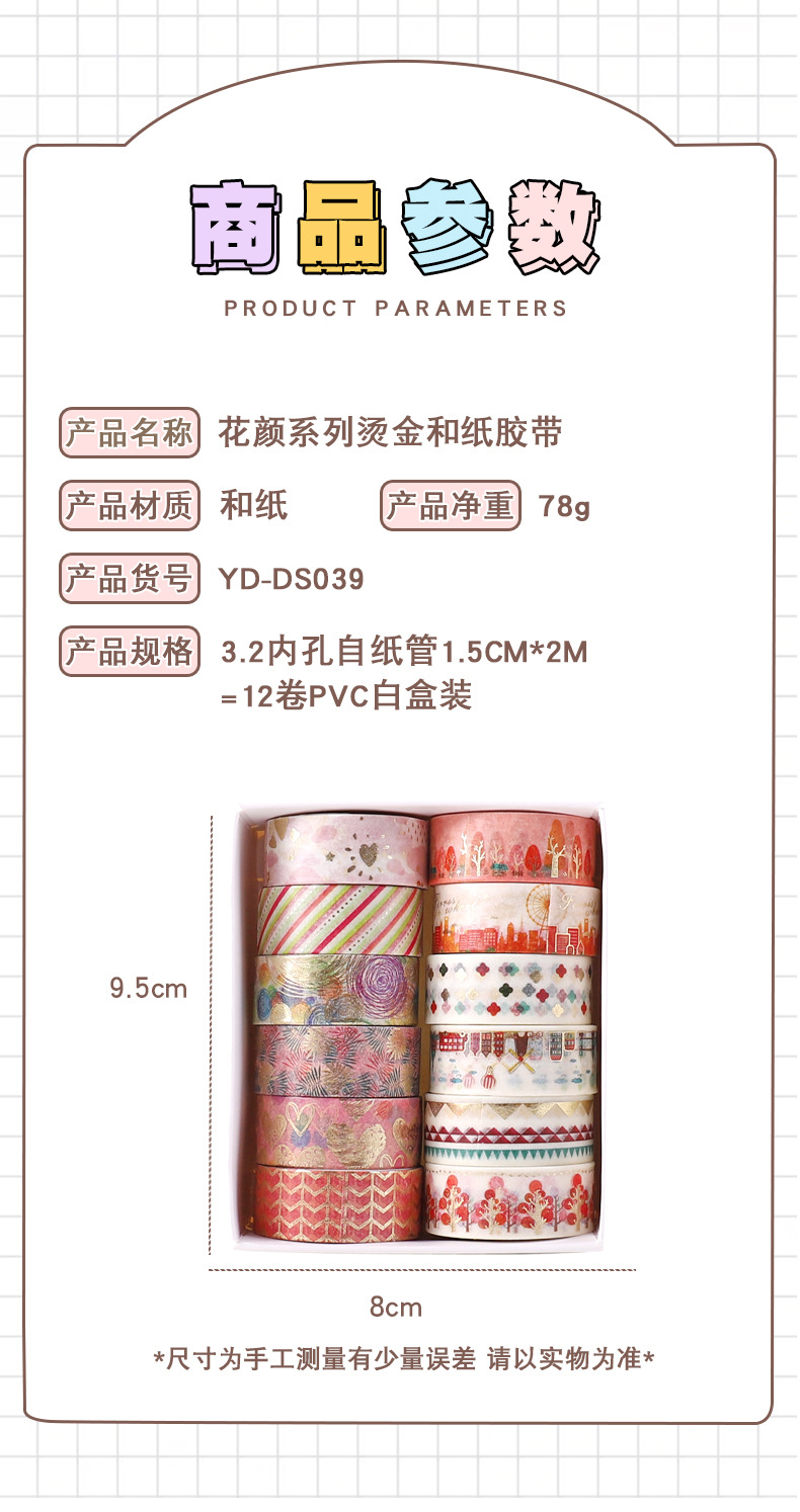 이다 크로스 보더 플라워 2.0 시리즈 청동과 종이 테이프 2M 15mm 및 종이 핸드 계정 스티커 테이프 도매