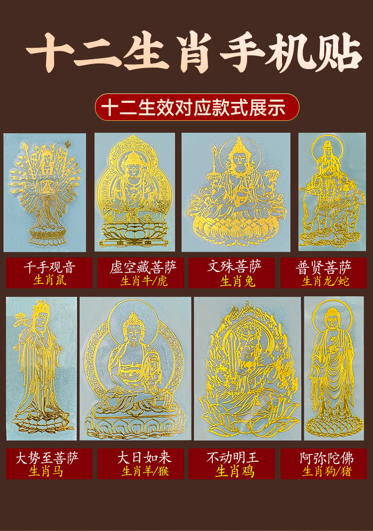 십이지신 수호신, 본생불, 휴대폰 스티커, 공수보살, 문수보살, 보현보살, 금속 스티커, 재고 있음, 수첩용스토어 가기