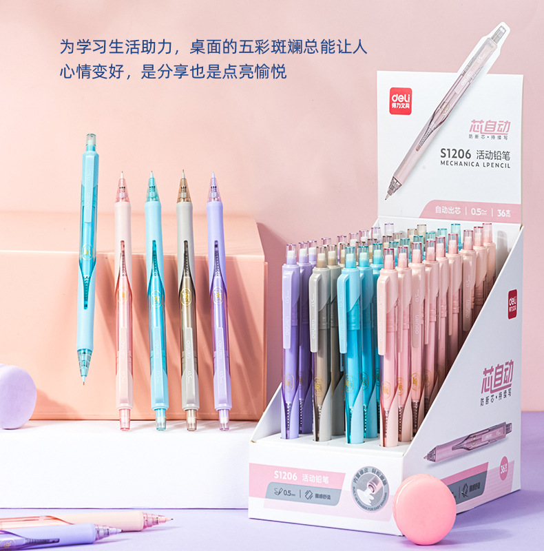 델리 0.5mm 안티 브레이킹 자동 연필 학생 활동 연필 사무실 학습 그리기 브러시 S1206스토어 가기