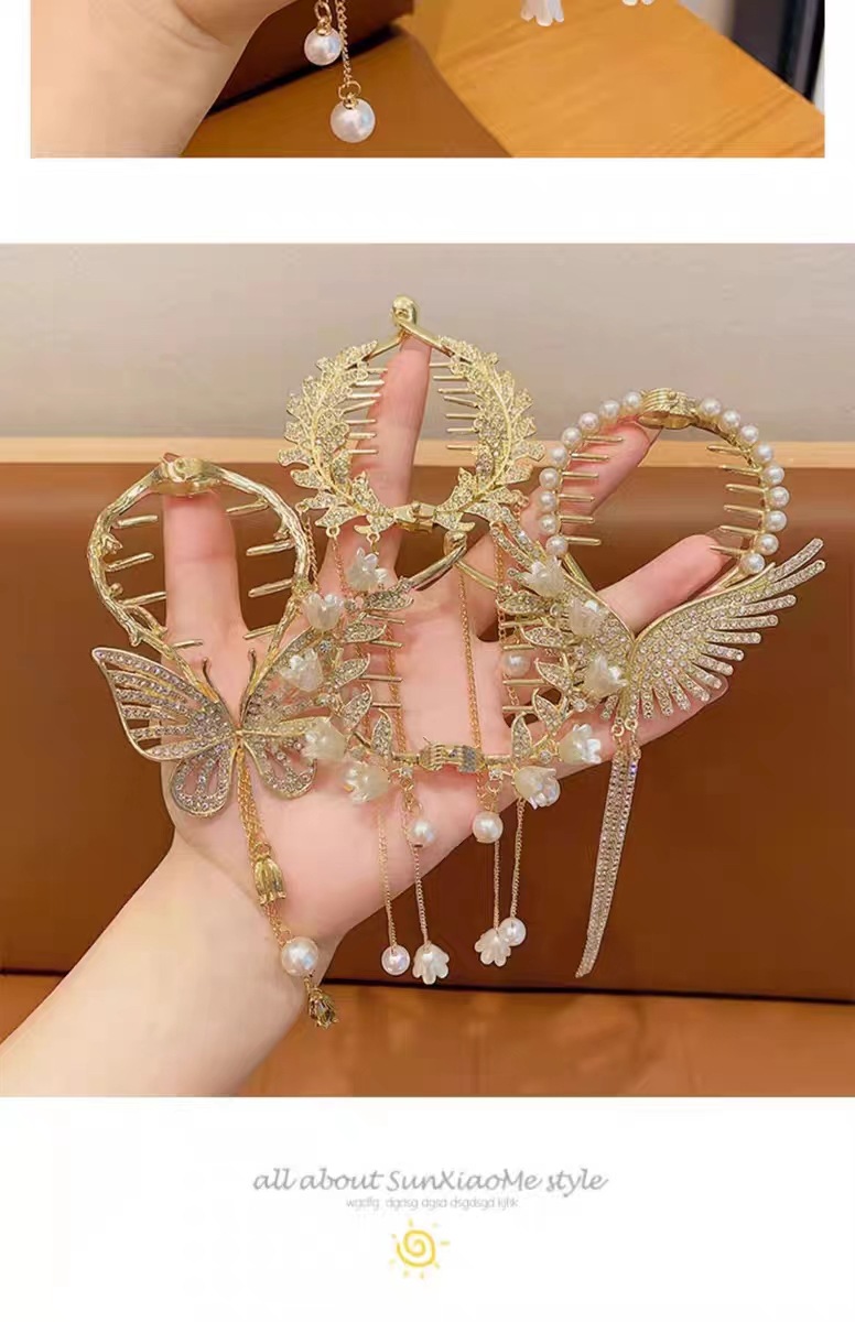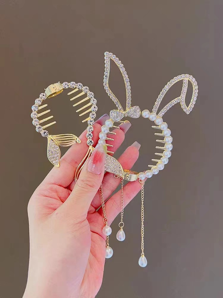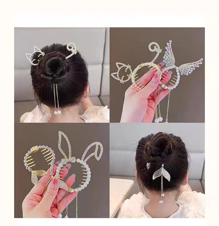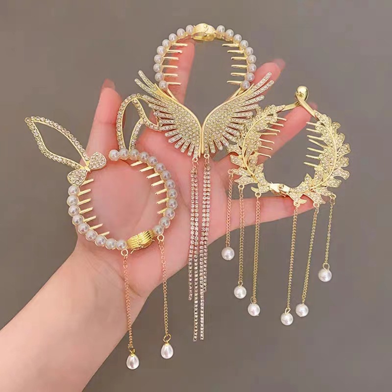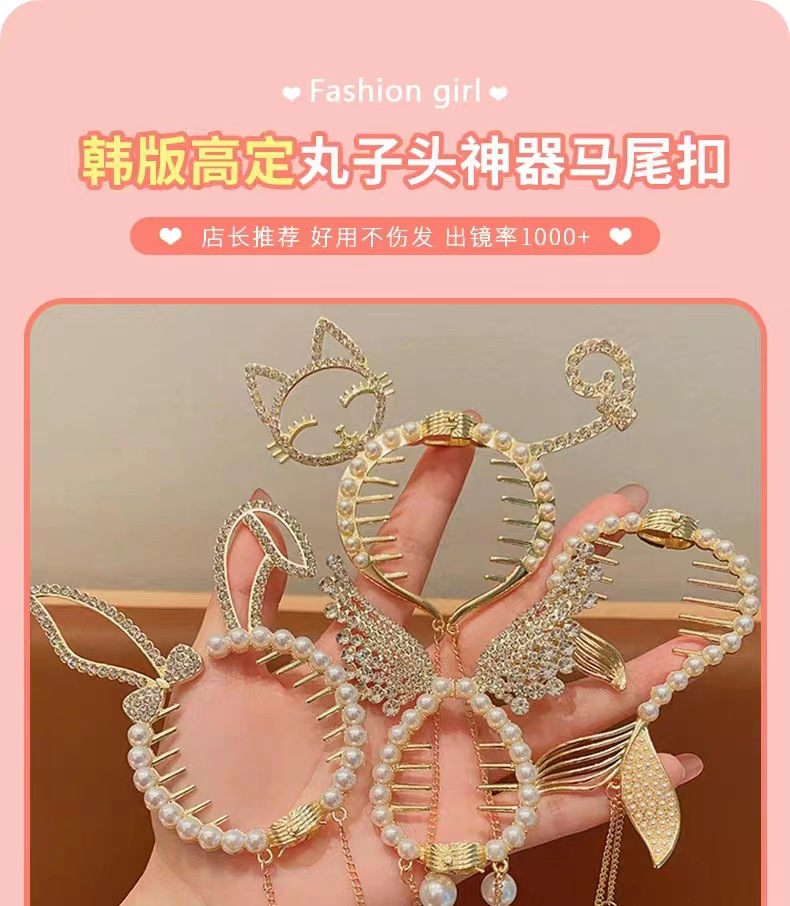 라이트 럭셔리 말꼬리 버클 헤어 클립 여성용 우아한 머리 고정 아티팩트 모자 백 헤드 그립 클립 다이아몬드 볼 헤어 클립스토어 가기