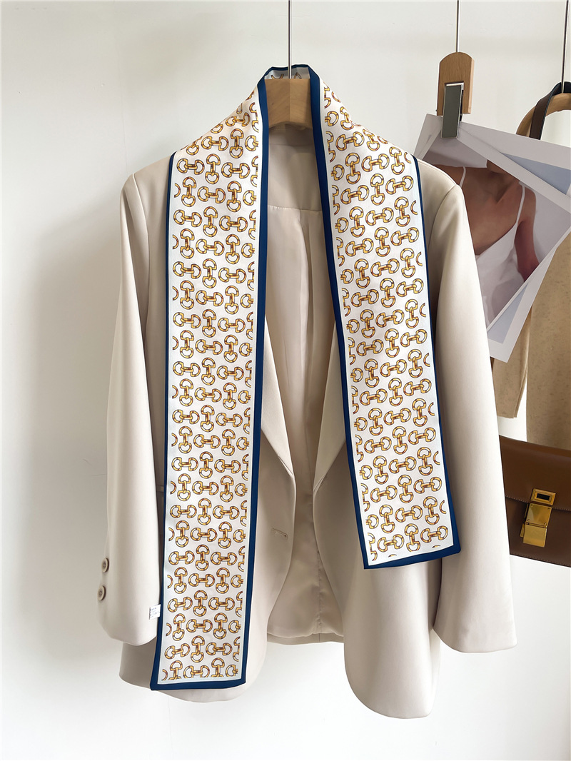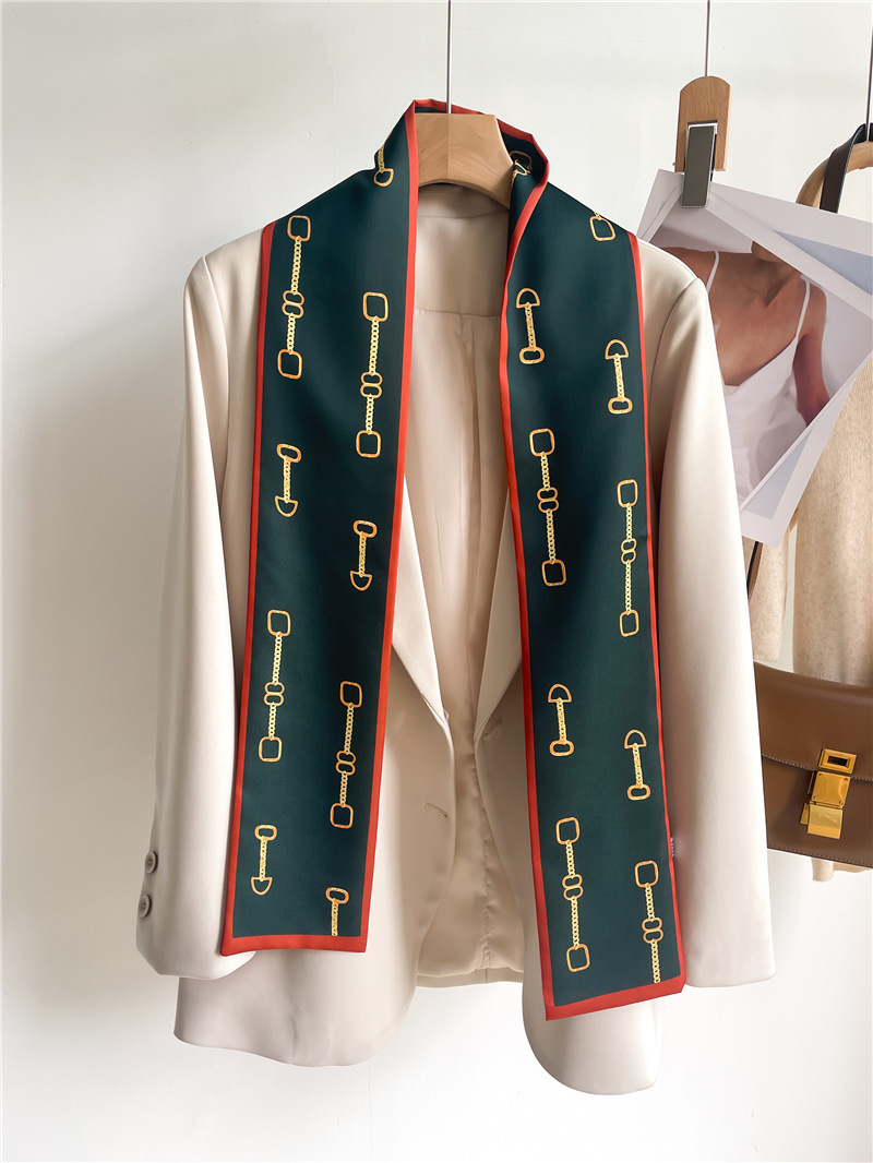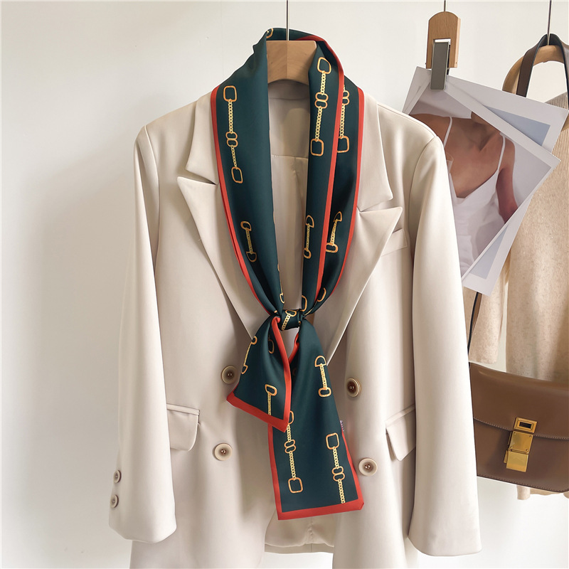 헤어 밴드 실크 스카프 얇은 스카프 리본 넥타이 가방 장식 여자의 양면 인쇄 좁은 얇은 세트 스카프 벨트 작은 긴 스트립