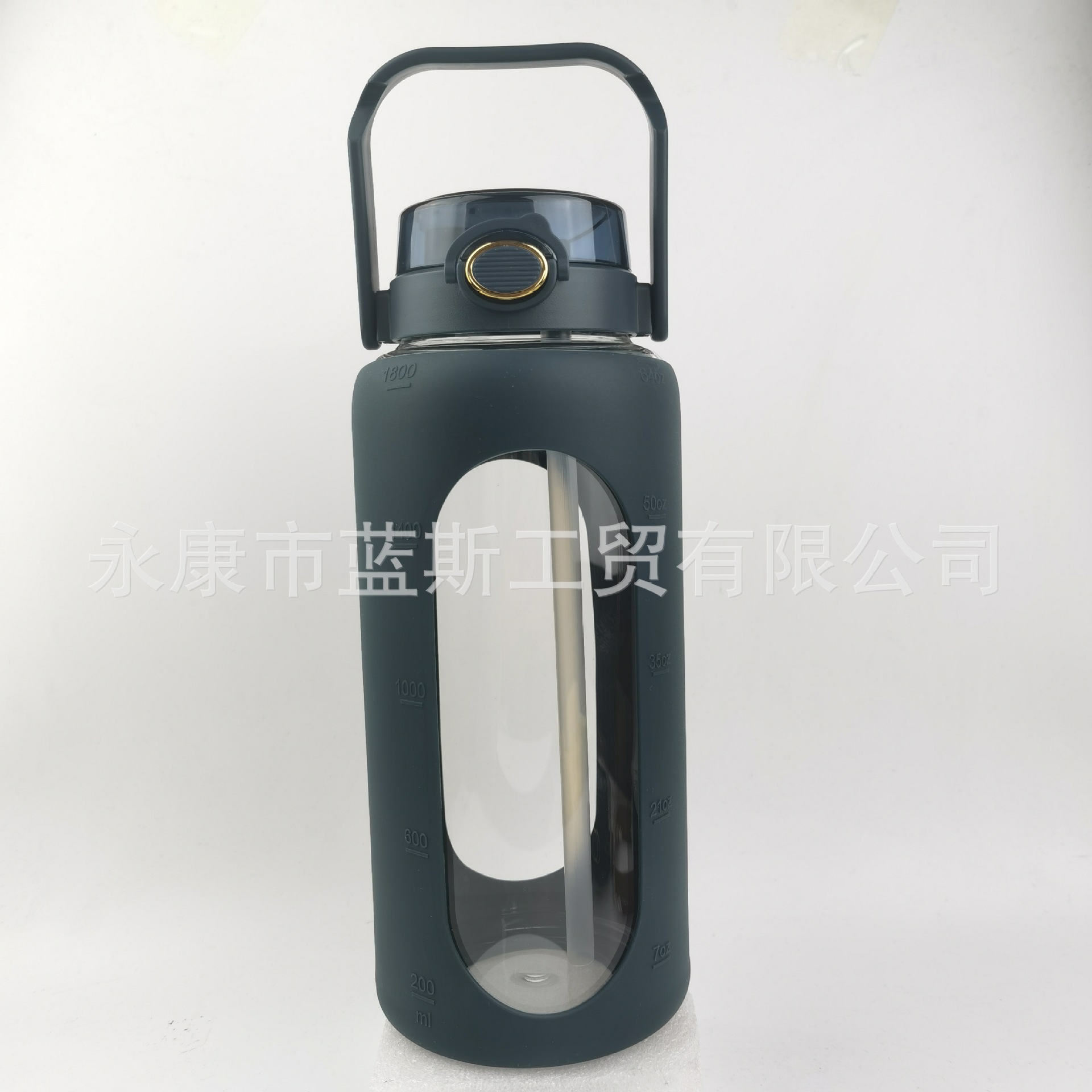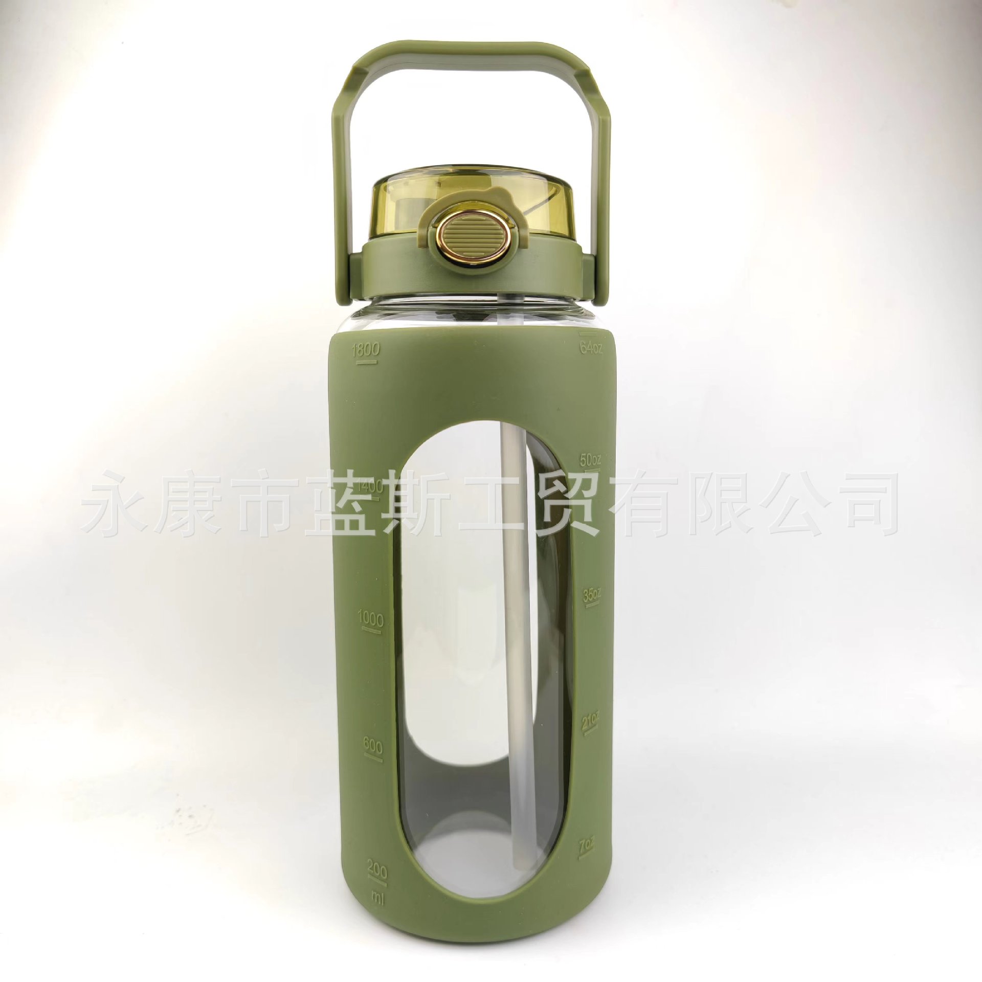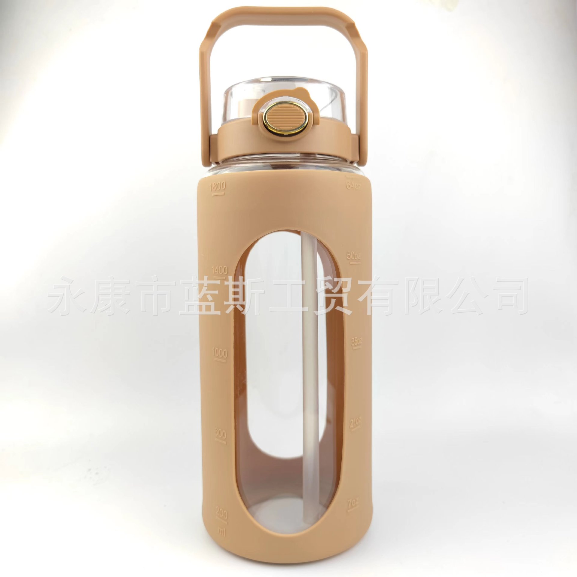 강도 공장 공급 64 온스 유리 컵 실리콘 커버 이중 음료 뚜껑 대용량 야외 스포츠 주전자 도매