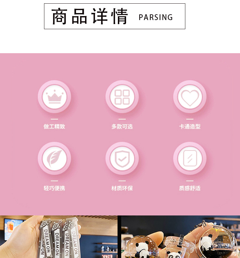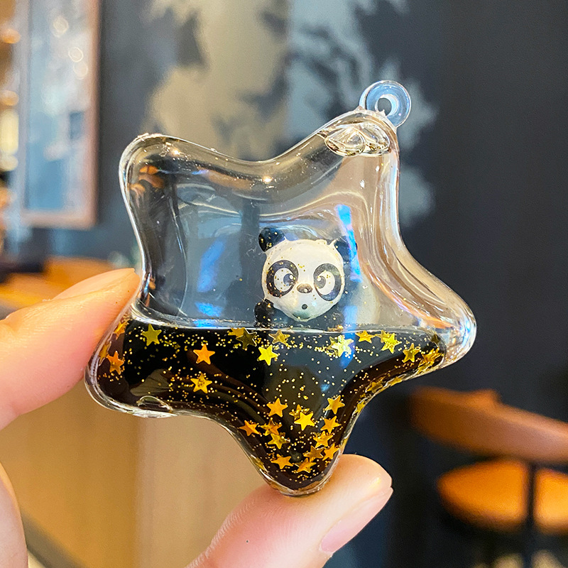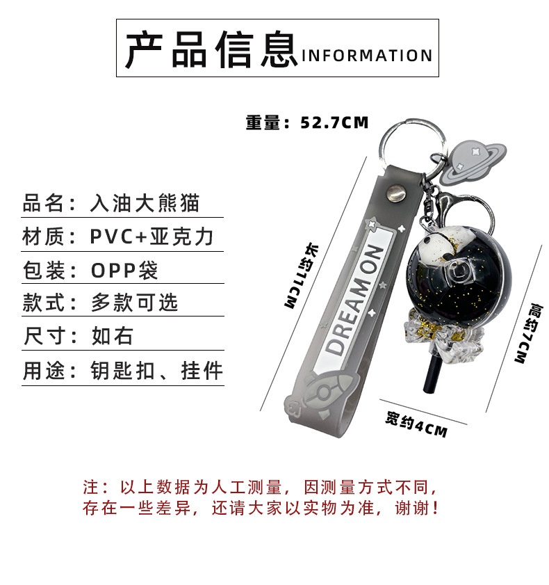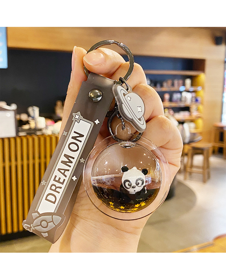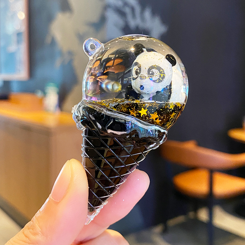 귀여운 자이언트 팬더 기름이 채워진 우유 차 컵 모래 병 열쇠 고리 펜던트 여성의 절묘한 남성과 여성의 책가방 교수형 열쇠 고리