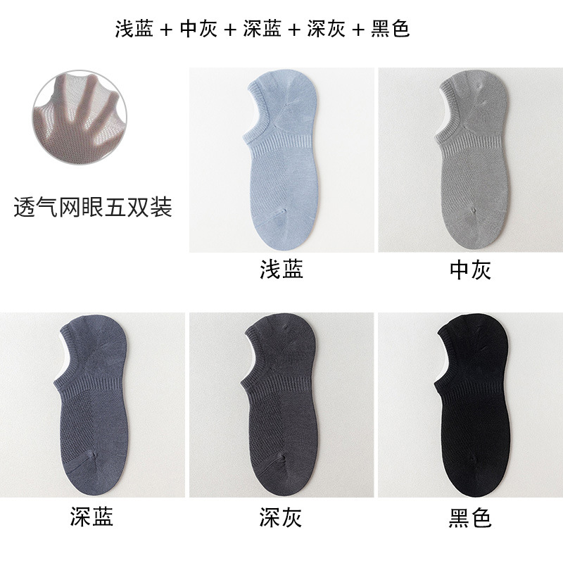 양말 남자 여름 얇은 짧은 양말 메쉬 통기성 단색면 양말 미끄럼 방지 얕은 보이지 않는 보트로 떨어지지 않습니다 양말 도매스토어 가기