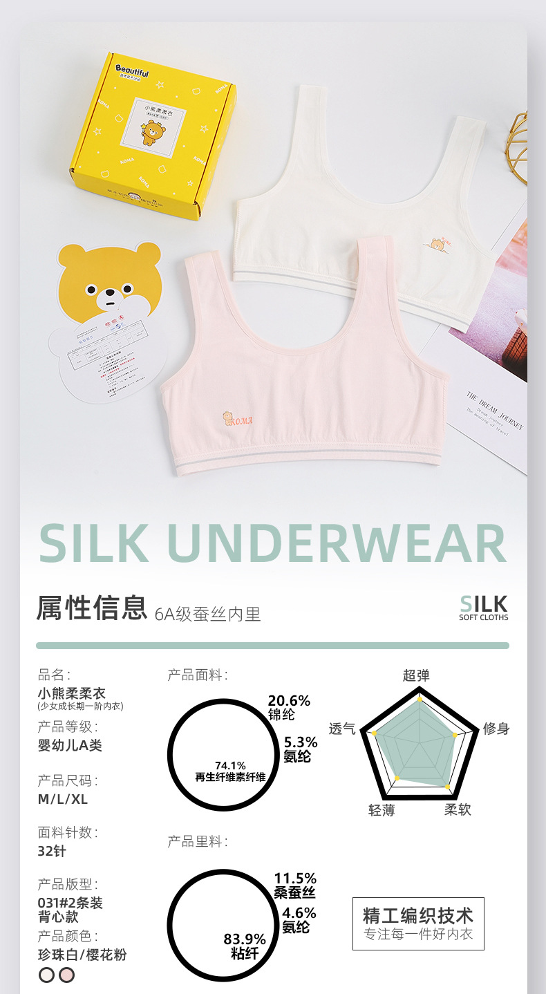 리틀 베어 부드러운 옷 여아 발달 속옷 1 단계 안티 범프 브라 학생 스포츠 안티 러닝 작은 조끼스토어 가기