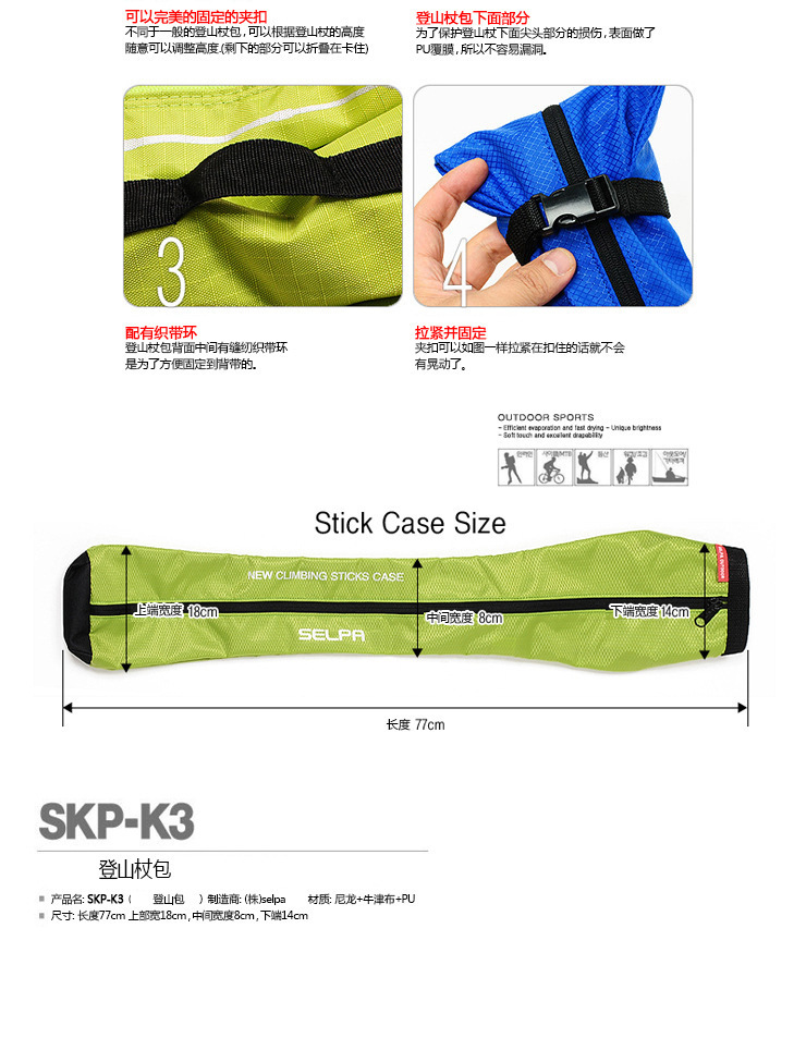 한국 야외 트레킹 폴 가방 보관 가방 배낭 대각선 휴대용 인간화 디자인 트레킹 폴 가방 가방스토어 가기