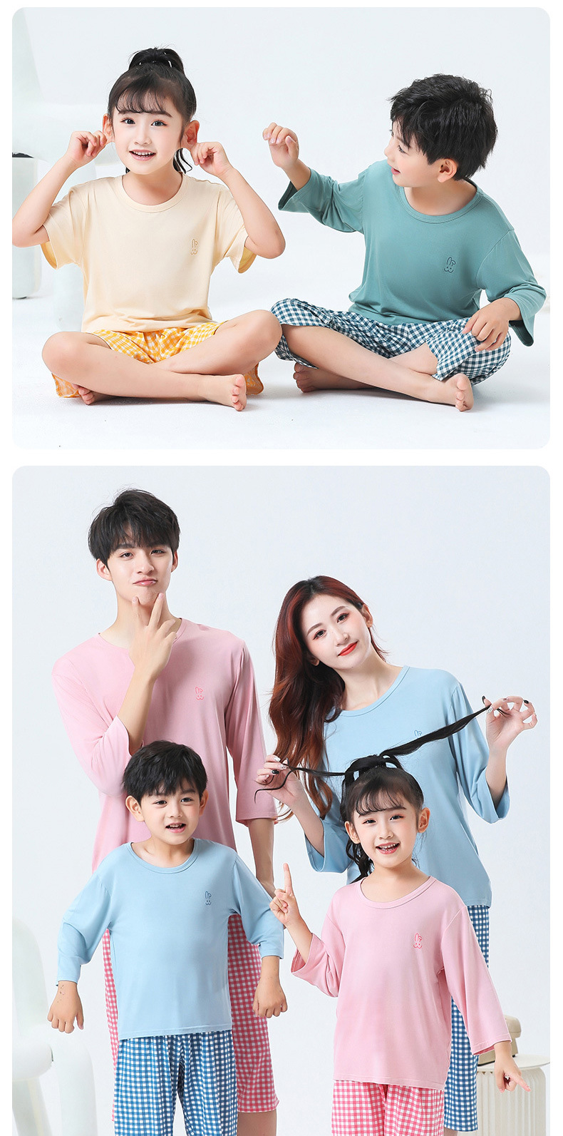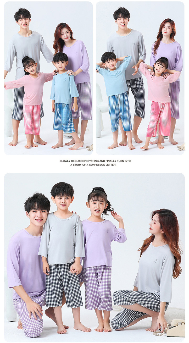 부모-자식 가정 옷 세트 모달 어린이 잠옷 소년 여름 얇은 여아 일곱 소매 에어컨 옷 세트스토어 가기