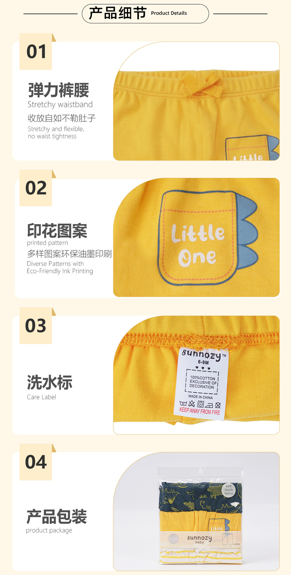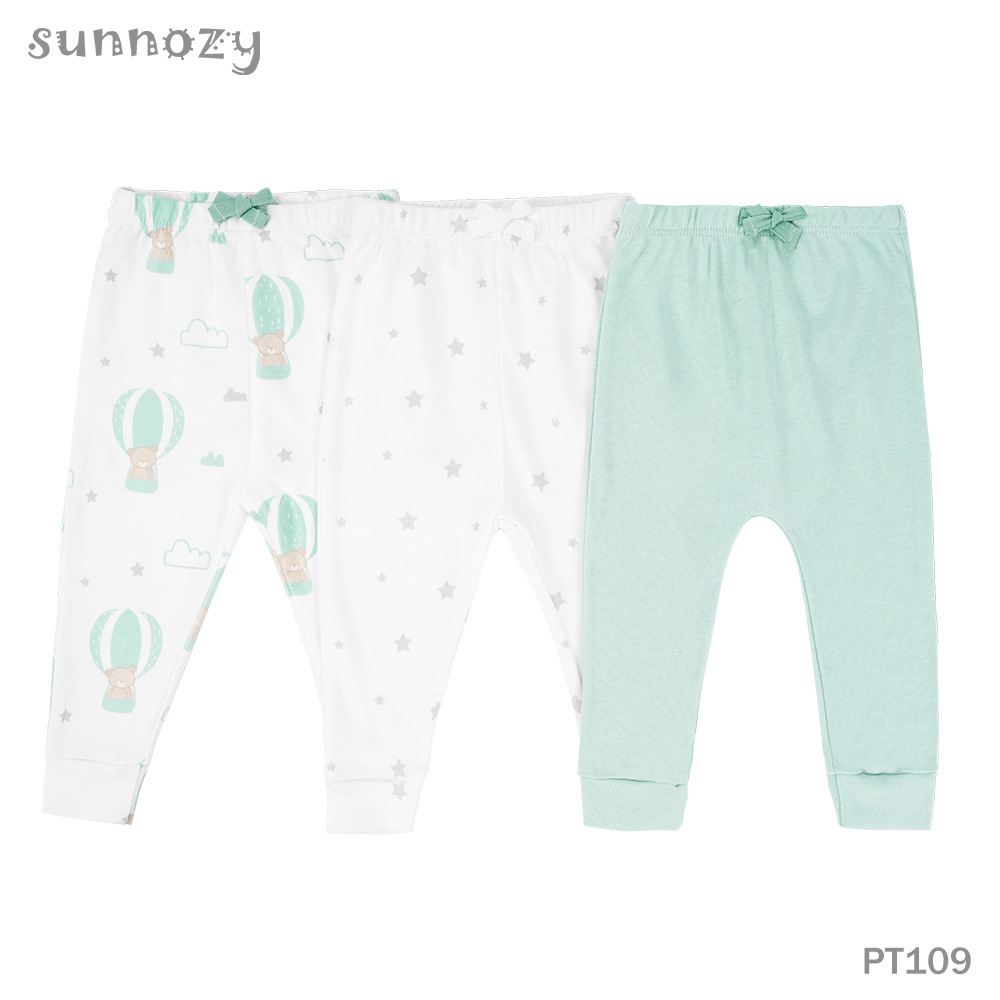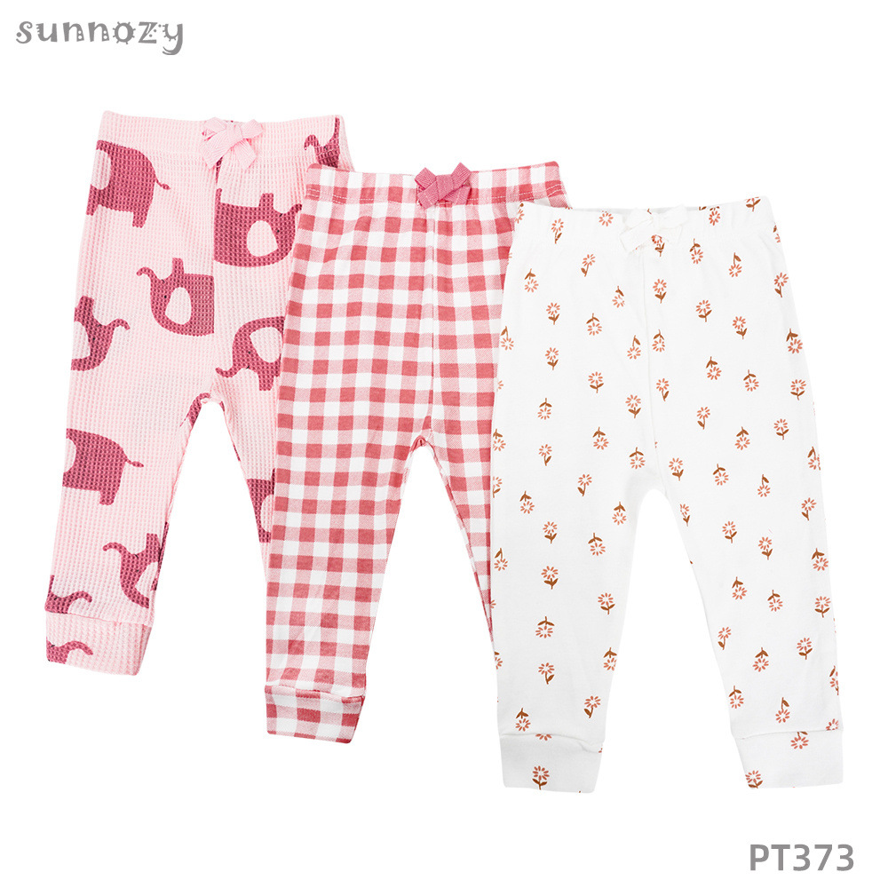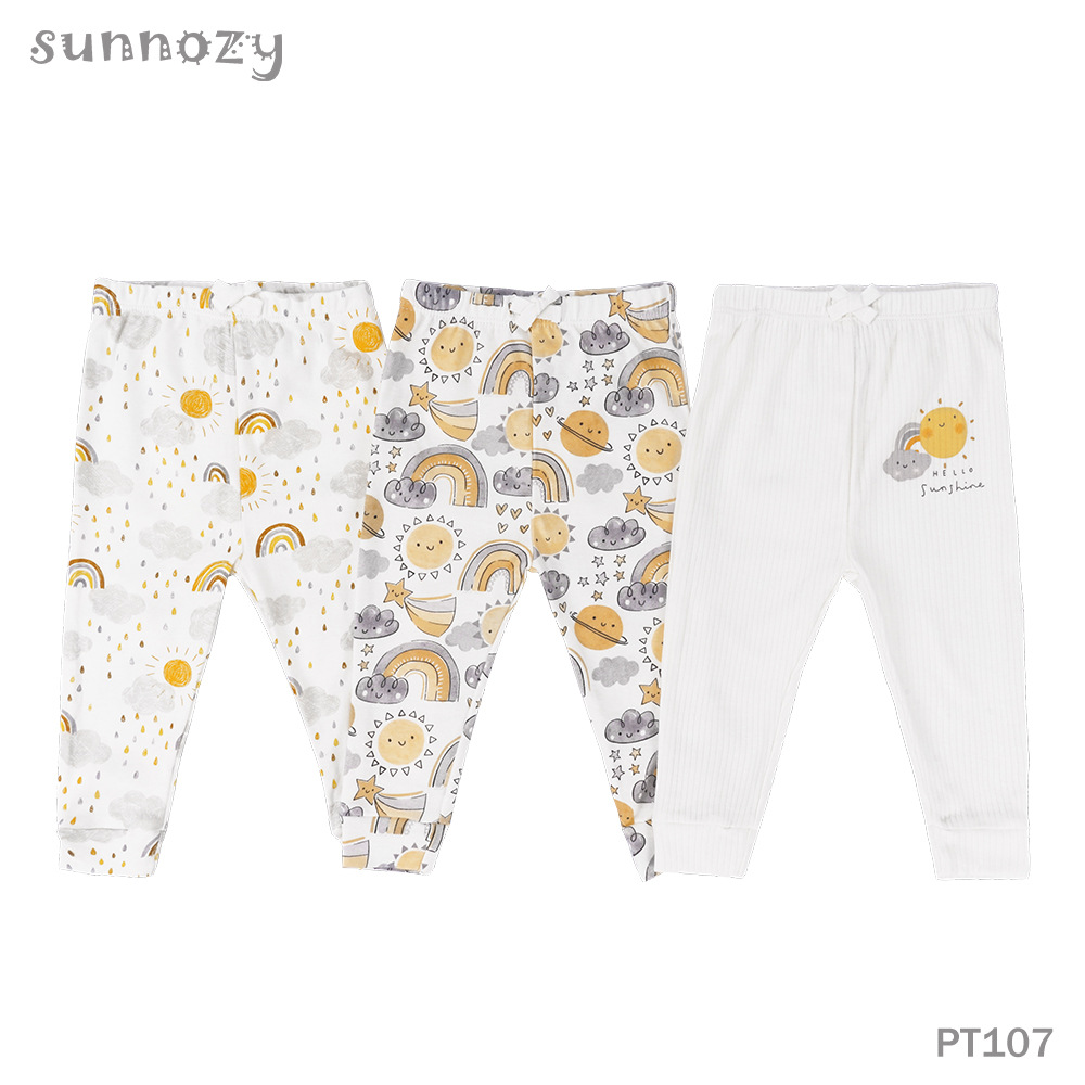 아기 긴바지 순면 홈웨어 잠옷 Sunnozy 3종 세트 나사형 밑단 조절 바지 수출용 아기 바지 도매