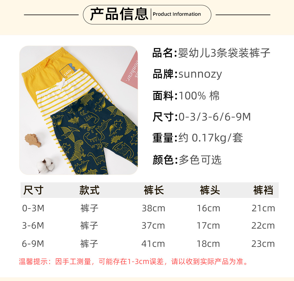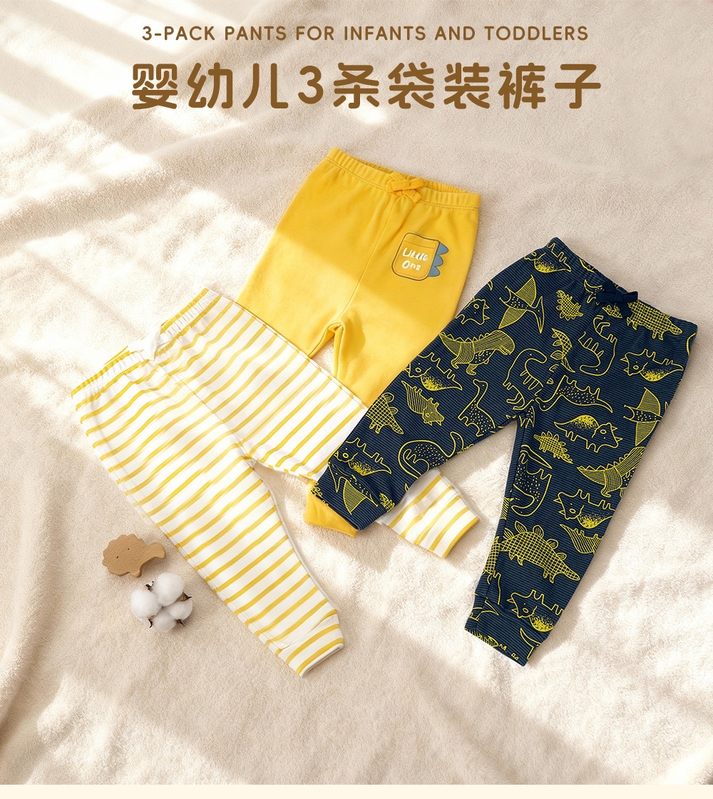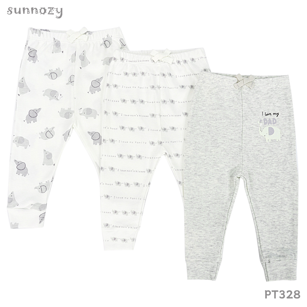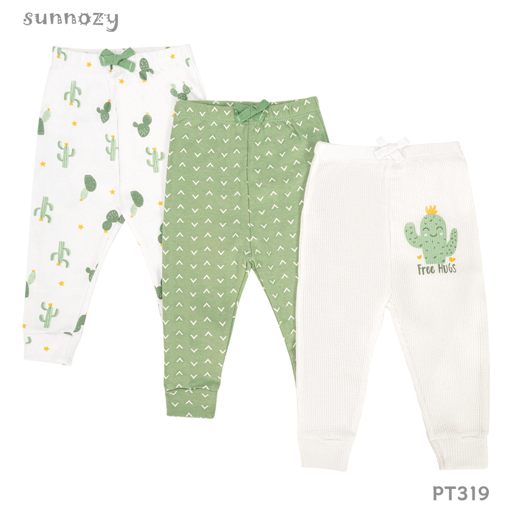 아기 긴바지 순면 홈웨어 잠옷 Sunnozy 3종 세트 나사형 밑단 조절 바지 수출용 아기 바지 도매