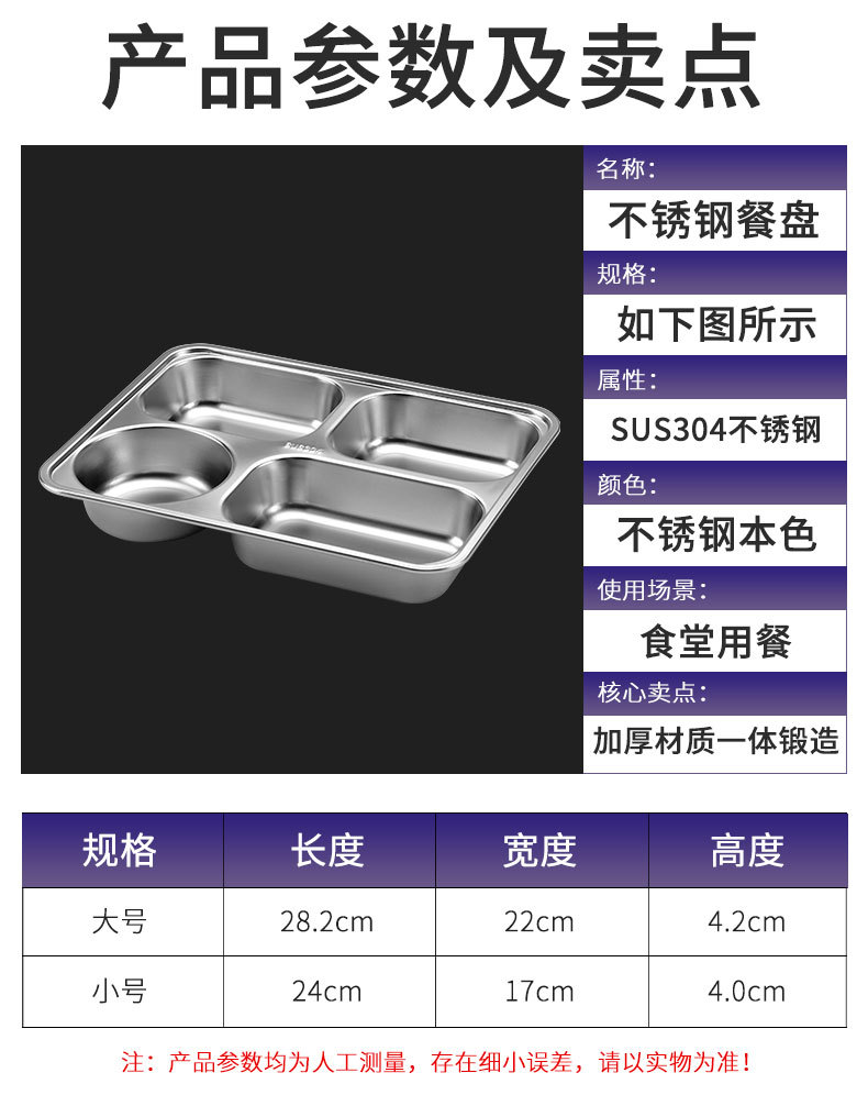 스테인리스 식판, 칸막이 식판, 직사각형 트레이, 상업용 사각 접시, 스테인리스 접시, 고급스러운 디자인스토어 가기