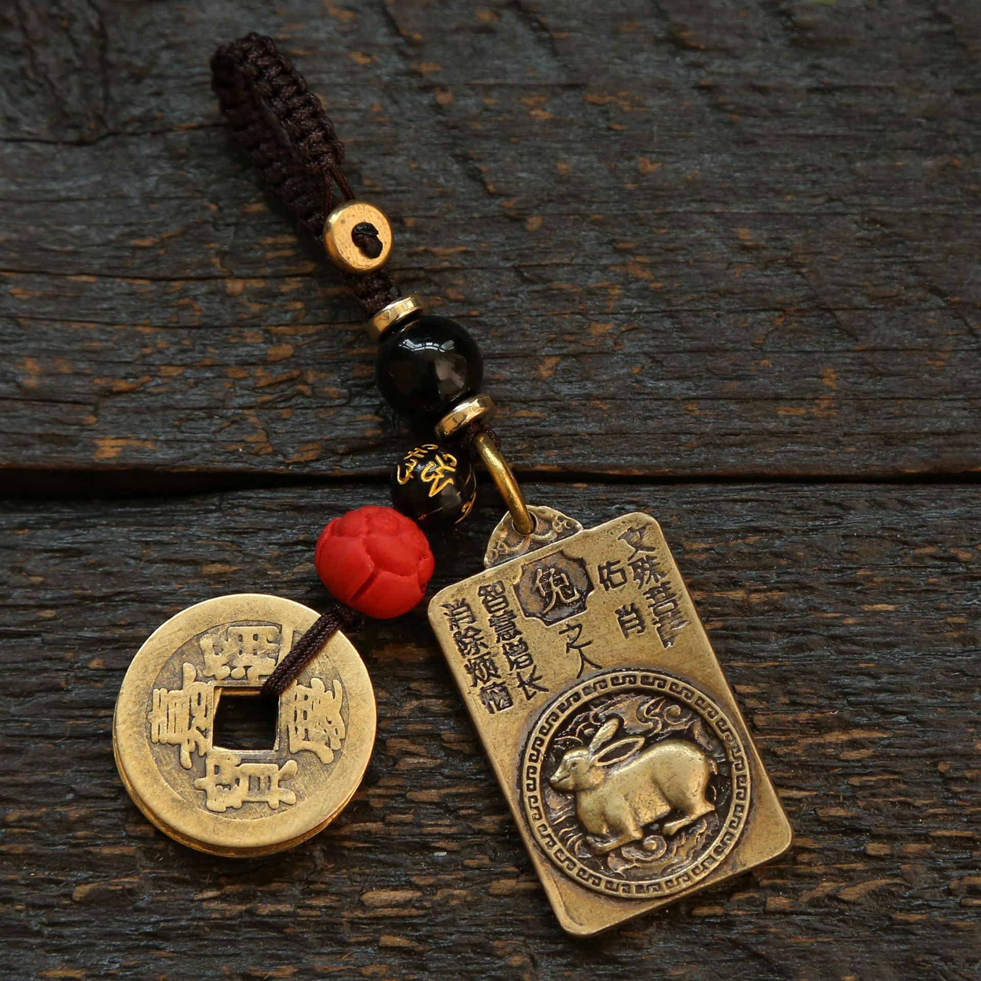 • [조디악 토끼 만주리 보살상] + 검은 빨간 구슬 다섯 황제 돈