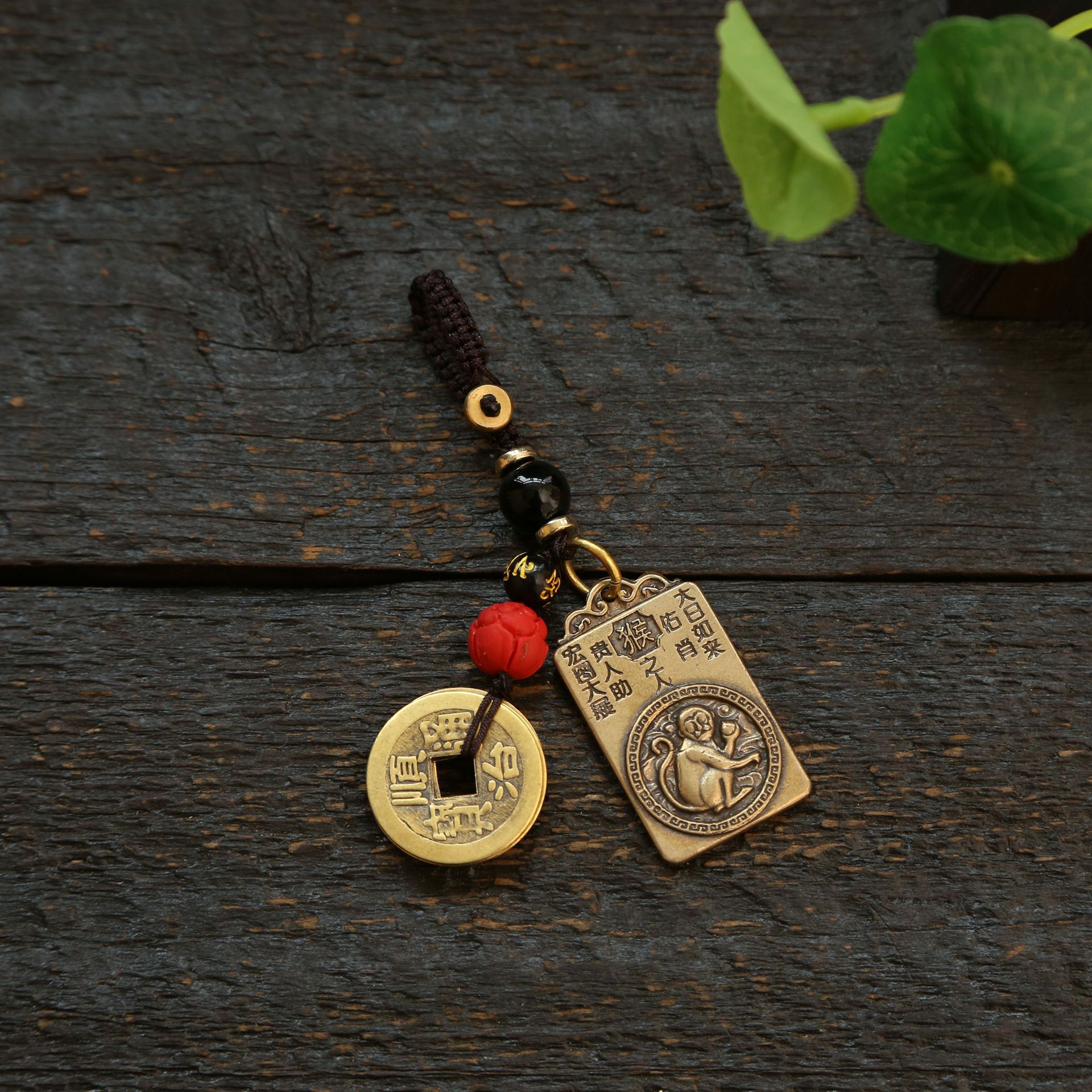 • [조디악 원숭이 타가타] + 블랙 레드 비즈 다섯 황제 돈