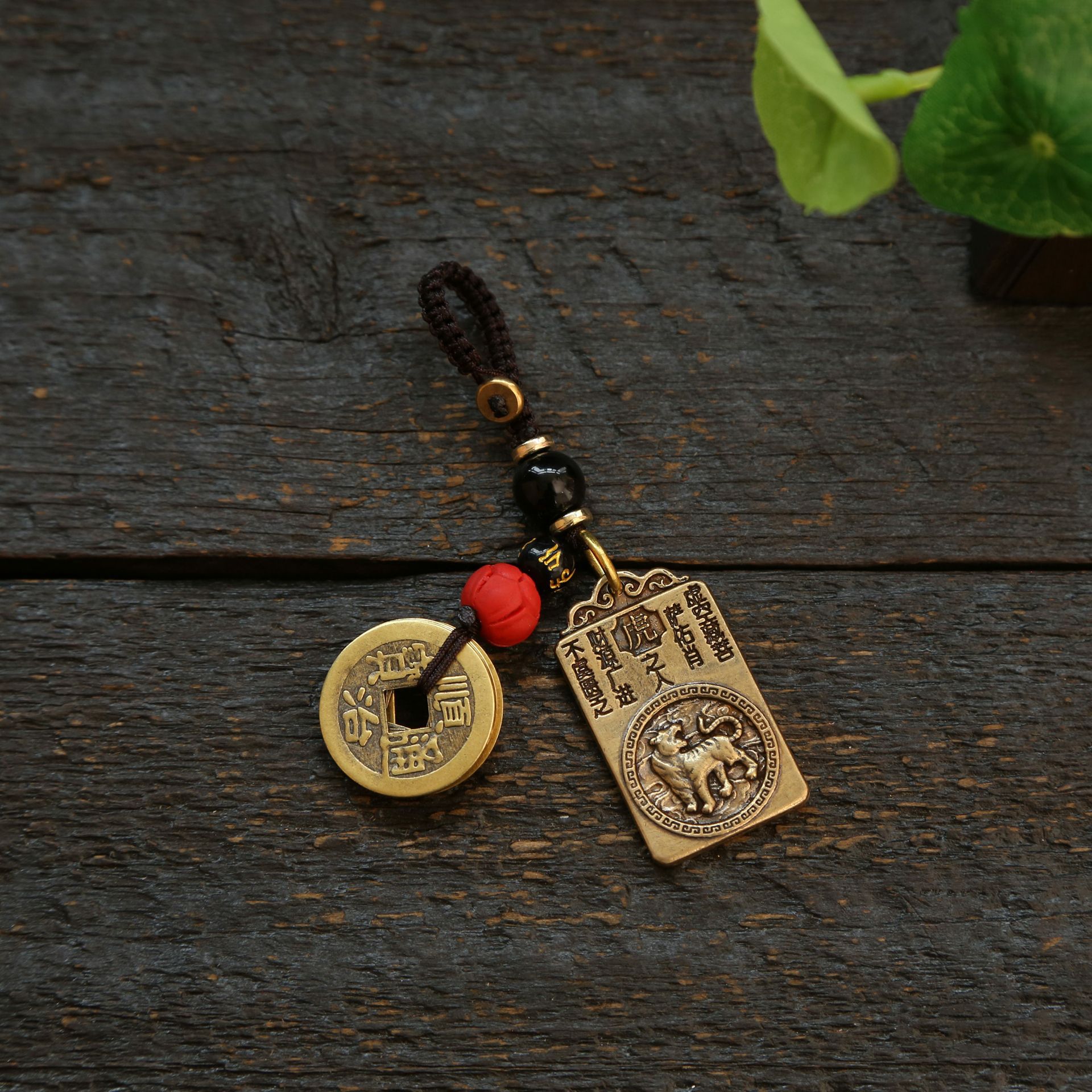 • [조디악 호랑이 허영심 숨겨진 보살상] + 블랙 레드 비즈 다섯 황제 돈