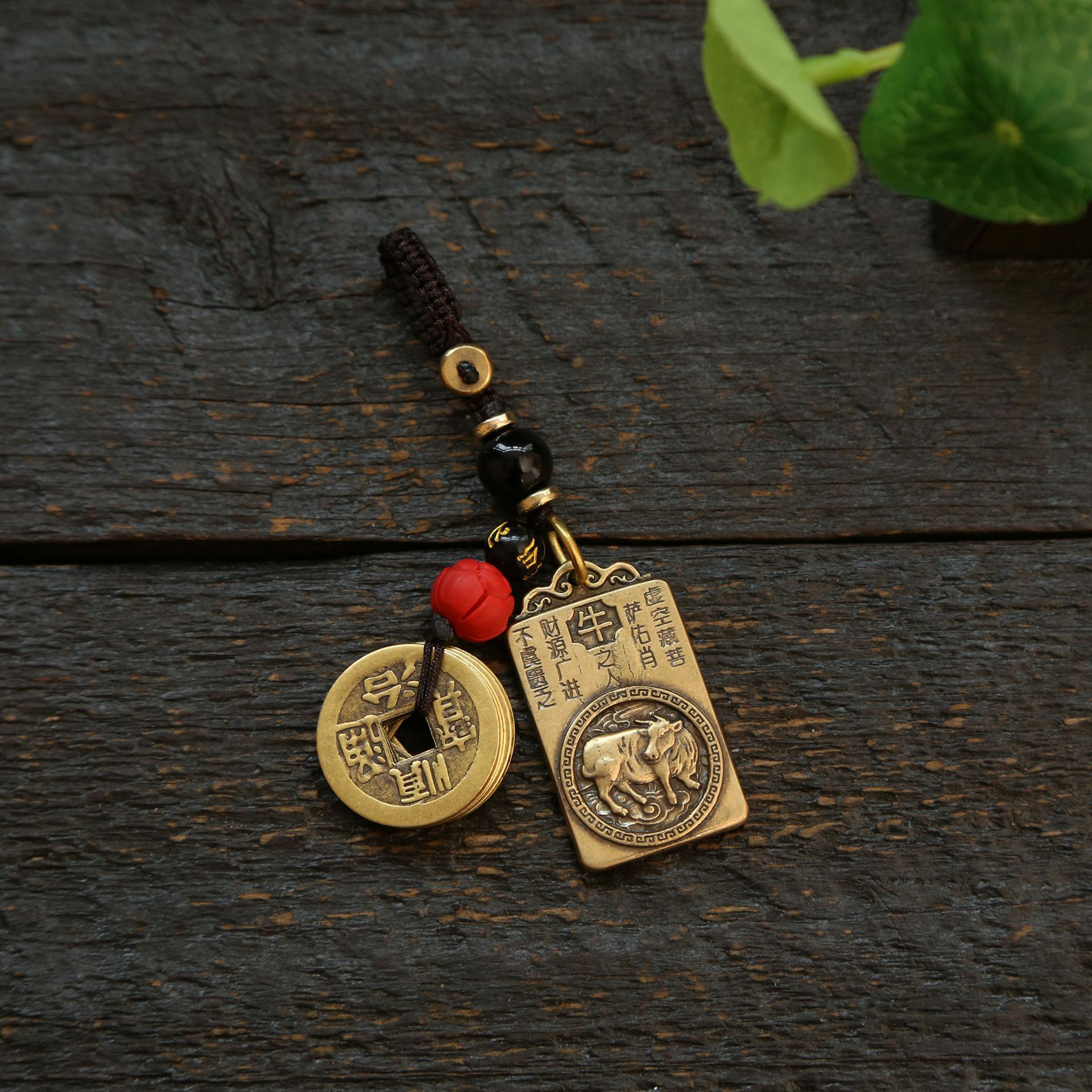 • [조디악 암소 공허 숨겨진 보살상] + 검은 빨간 구슬 다섯 황제 돈