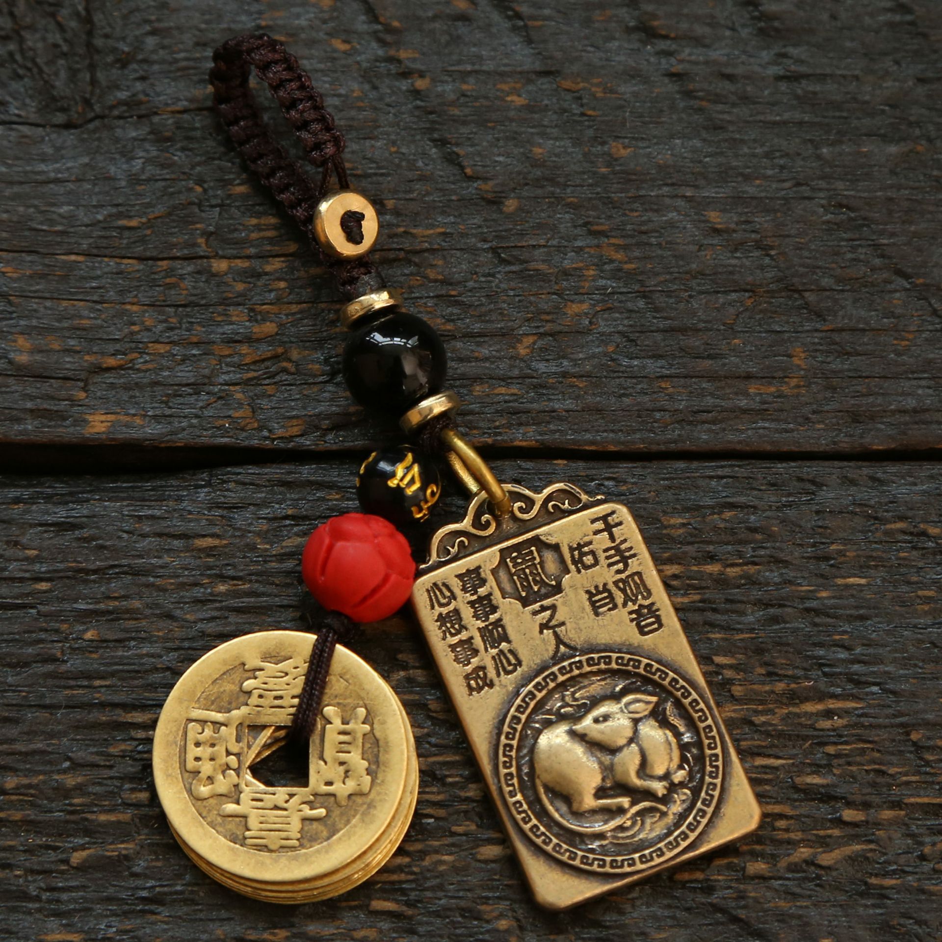 • [조디악 쥐 천 손 관음] + 검은 붉은 구슬 다섯 황제 돈