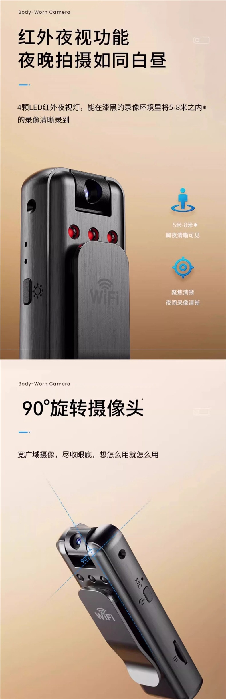 M8 휴대용 비디오 레코더, 핸드헬드 백클립 카메라, 고화질 회의 카메라, 와이파이 모니터링 미니