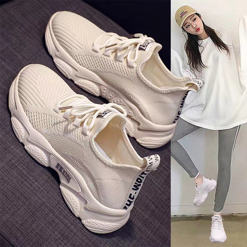 2023 새로운 비행 직조 캐주얼 스포츠 러닝화 천 신발 부드러운 바닥 통기성 여성용 메쉬 신발 캐주얼 레이스 업 여성 학생 신발스토어 가기