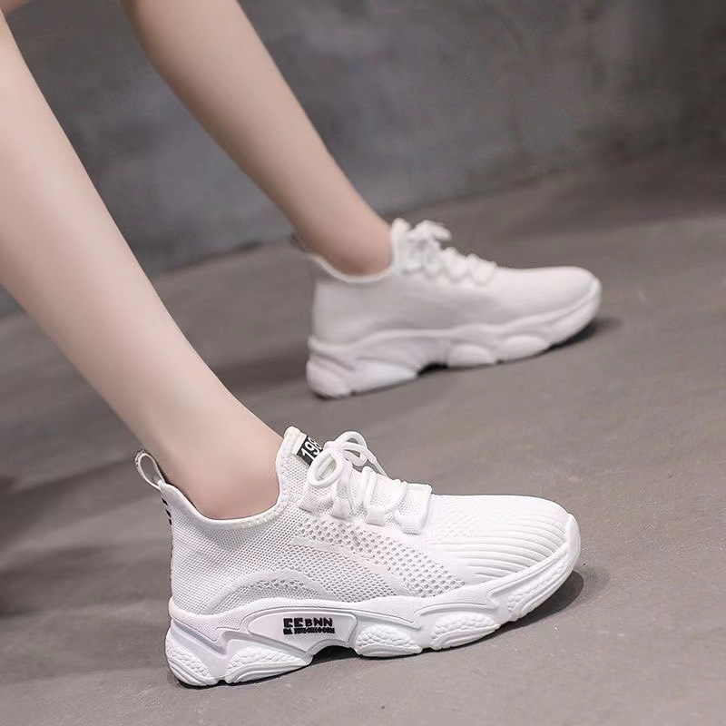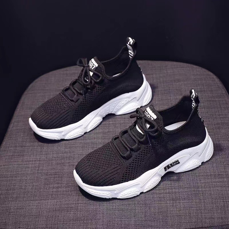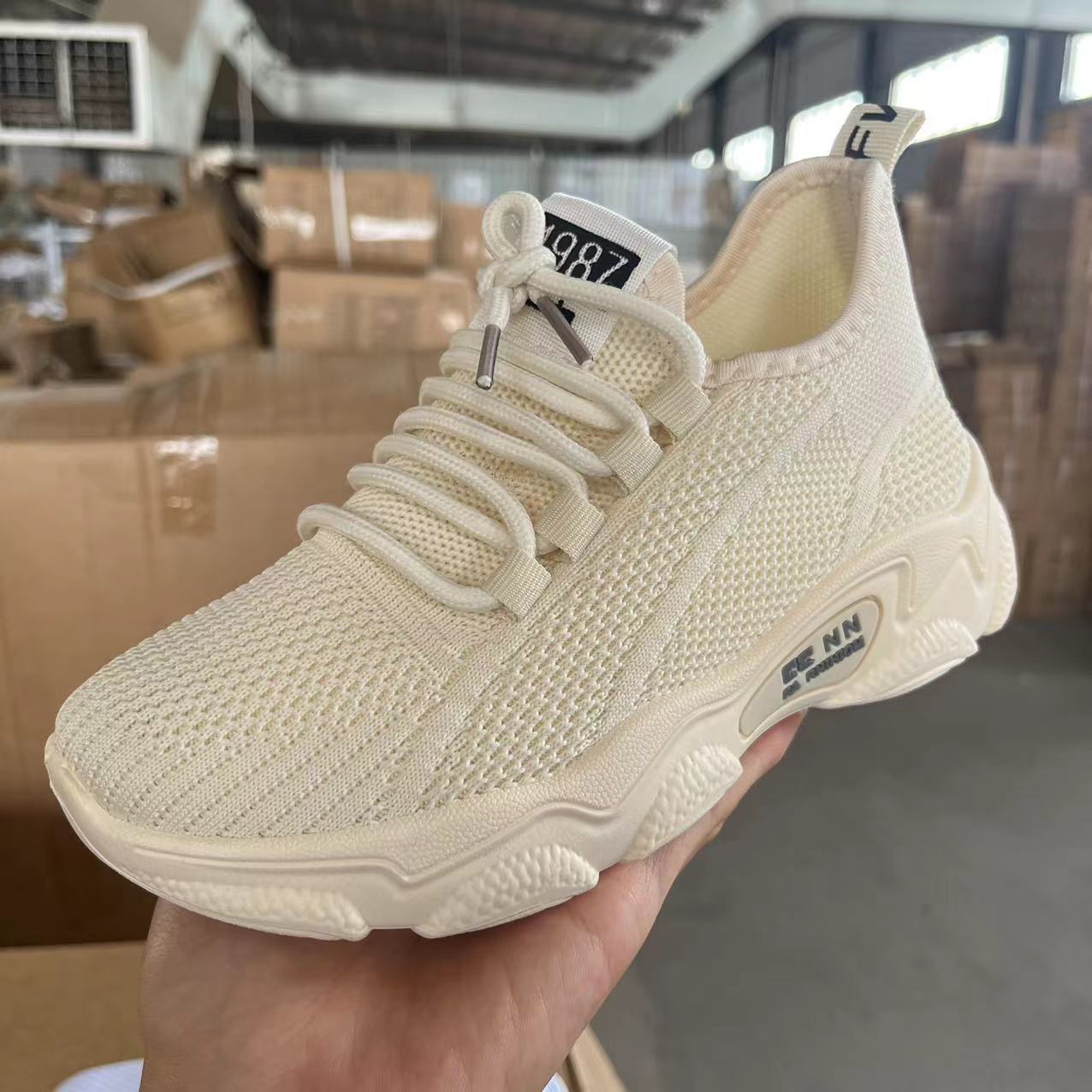 2023 새로운 비행 직조 캐주얼 스포츠 러닝화 천 신발 부드러운 바닥 통기성 여성용 메쉬 신발 캐주얼 레이스 업 여성 학생 신발