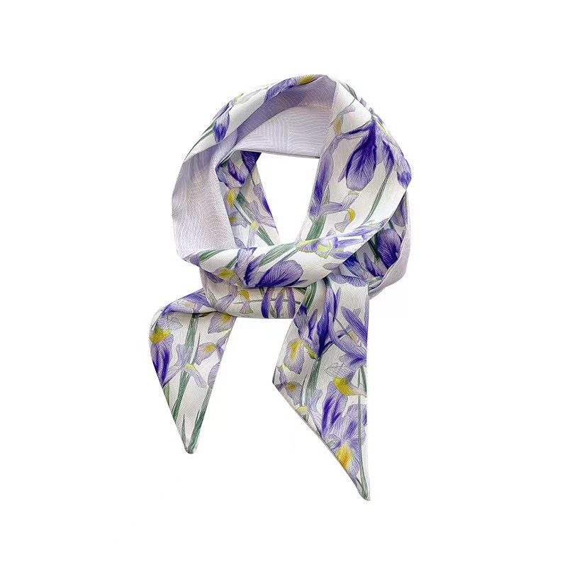 일본식 심플 플라워 상쾌한 예술적 더블 레이어 새틴 작은 스카프 목 보호대 긴 실크 스카프 여성용 리본 타이 백