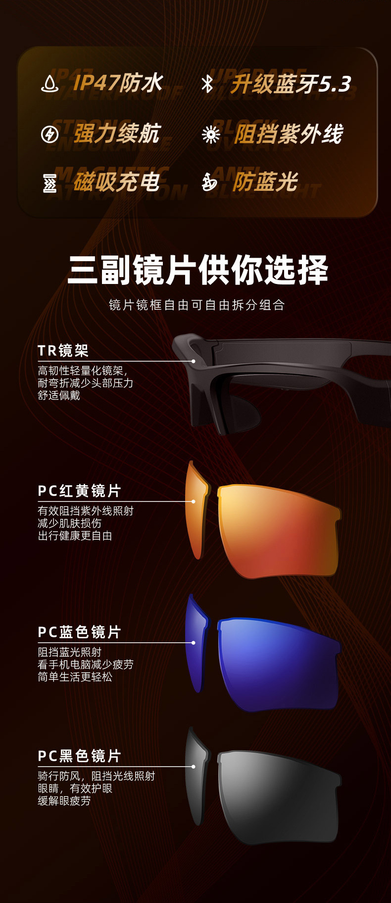 웨스턴 라이더 블루투스 승마 안경 태양 보호 근시 자전거 낚시 야외 남성과 여성의 스포츠 러닝 드라이빙 미러