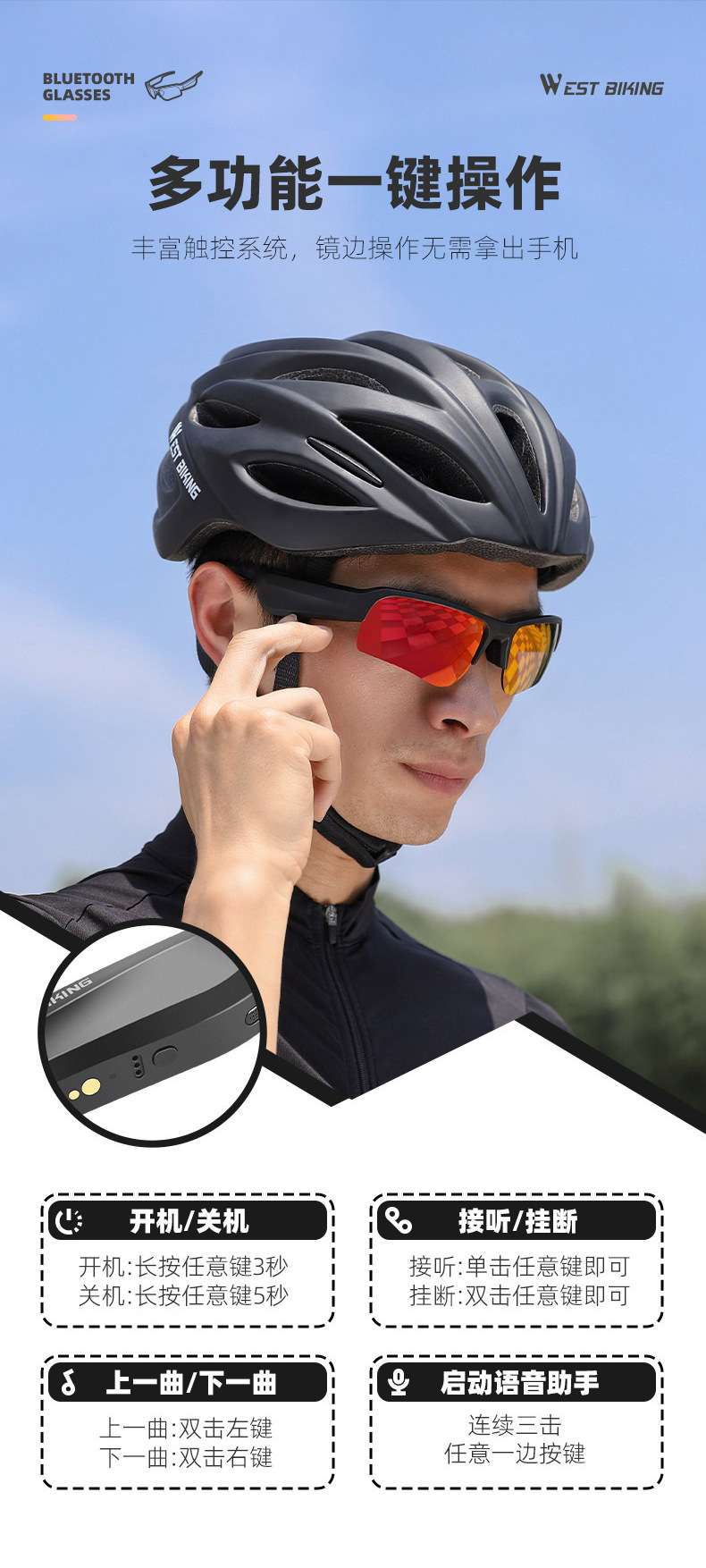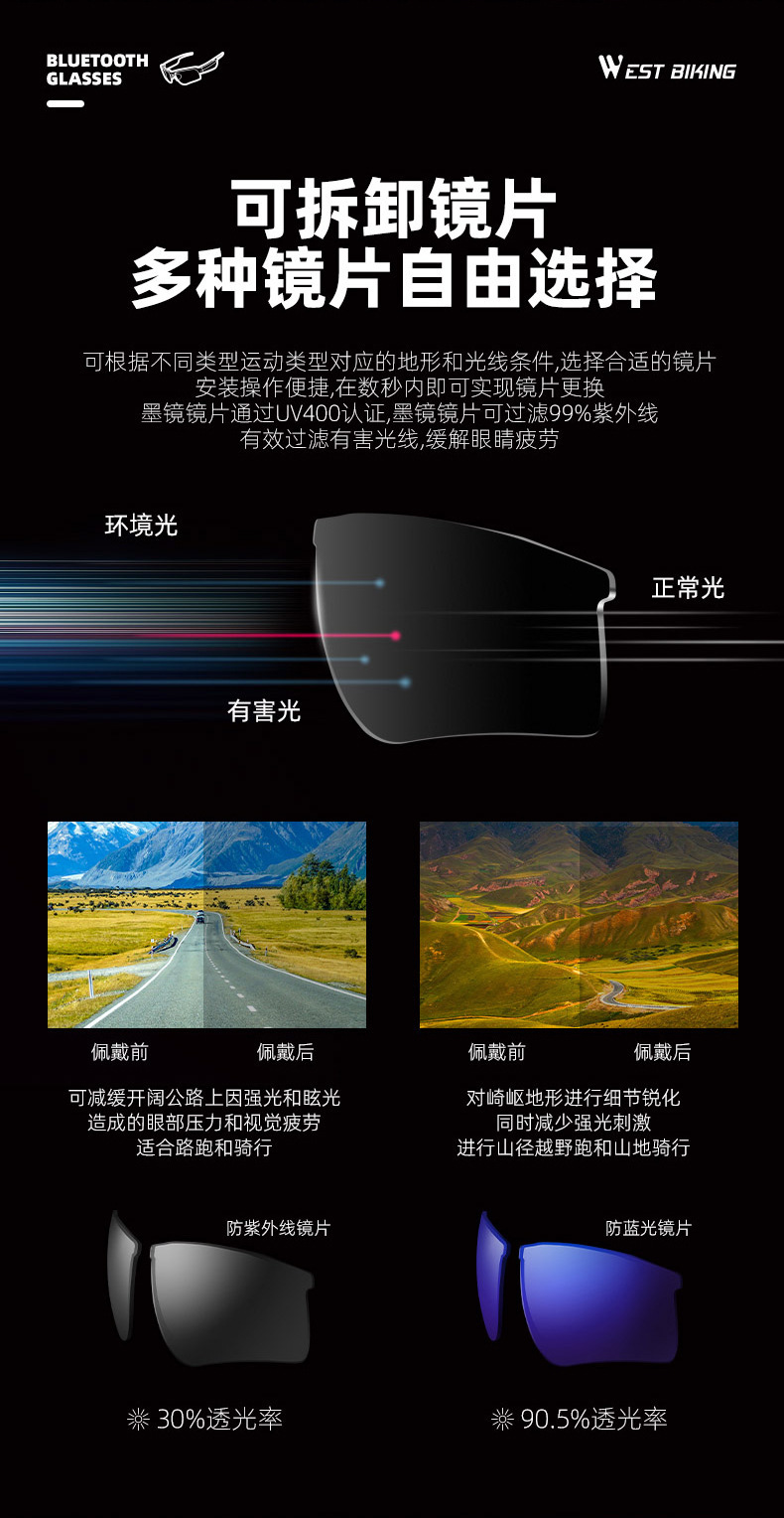 웨스턴 라이더 블루투스 승마 안경 태양 보호 근시 자전거 낚시 야외 남성과 여성의 스포츠 러닝 드라이빙 미러스토어 가기