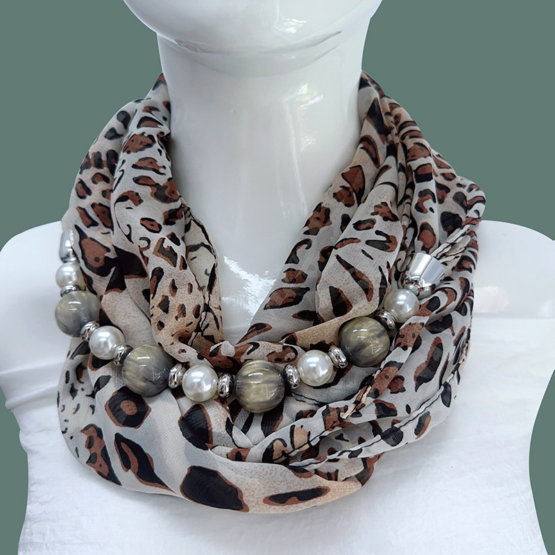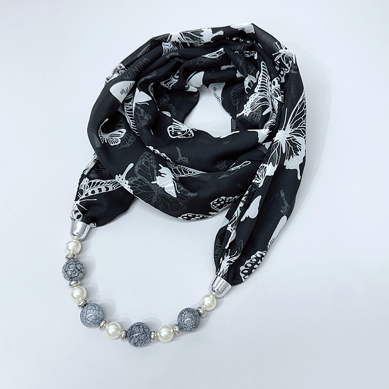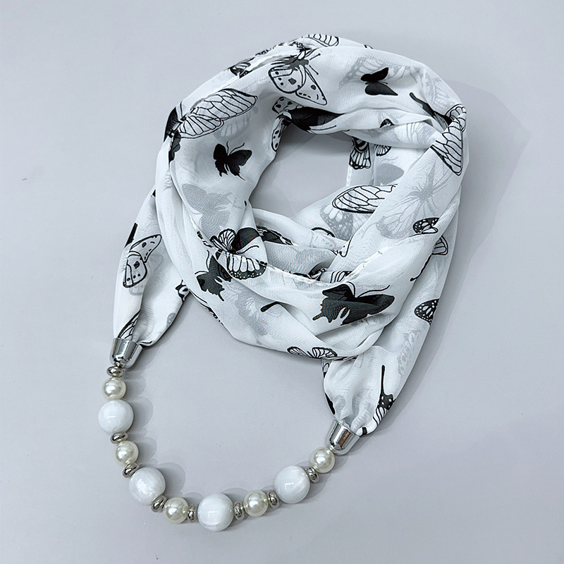 새로운 진주 쉬폰 구슬 체인 스카프 여성의 가을과 겨울 패션 스카프 봄과 여름 자외선 차단제 여성의 독특한 숄 장식 머리 스카프