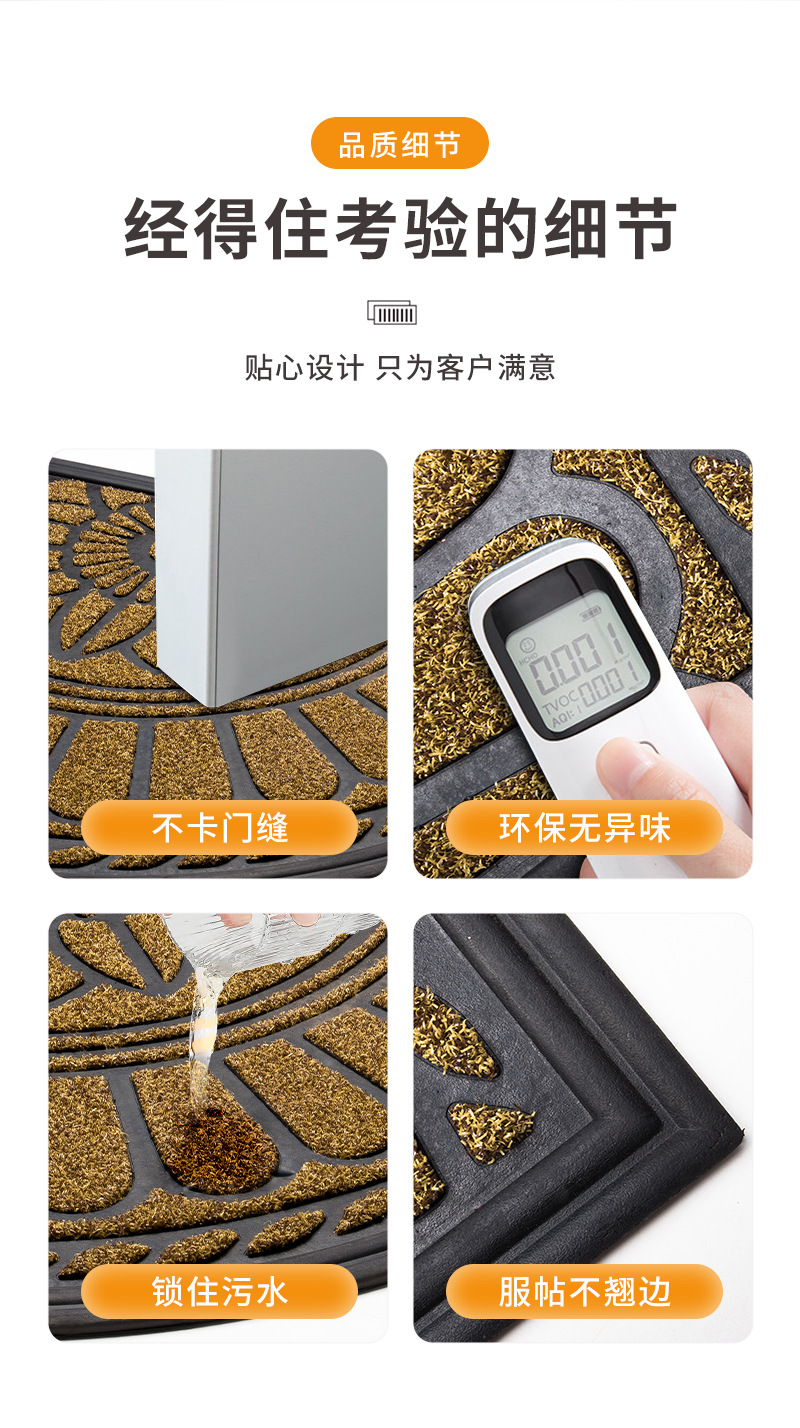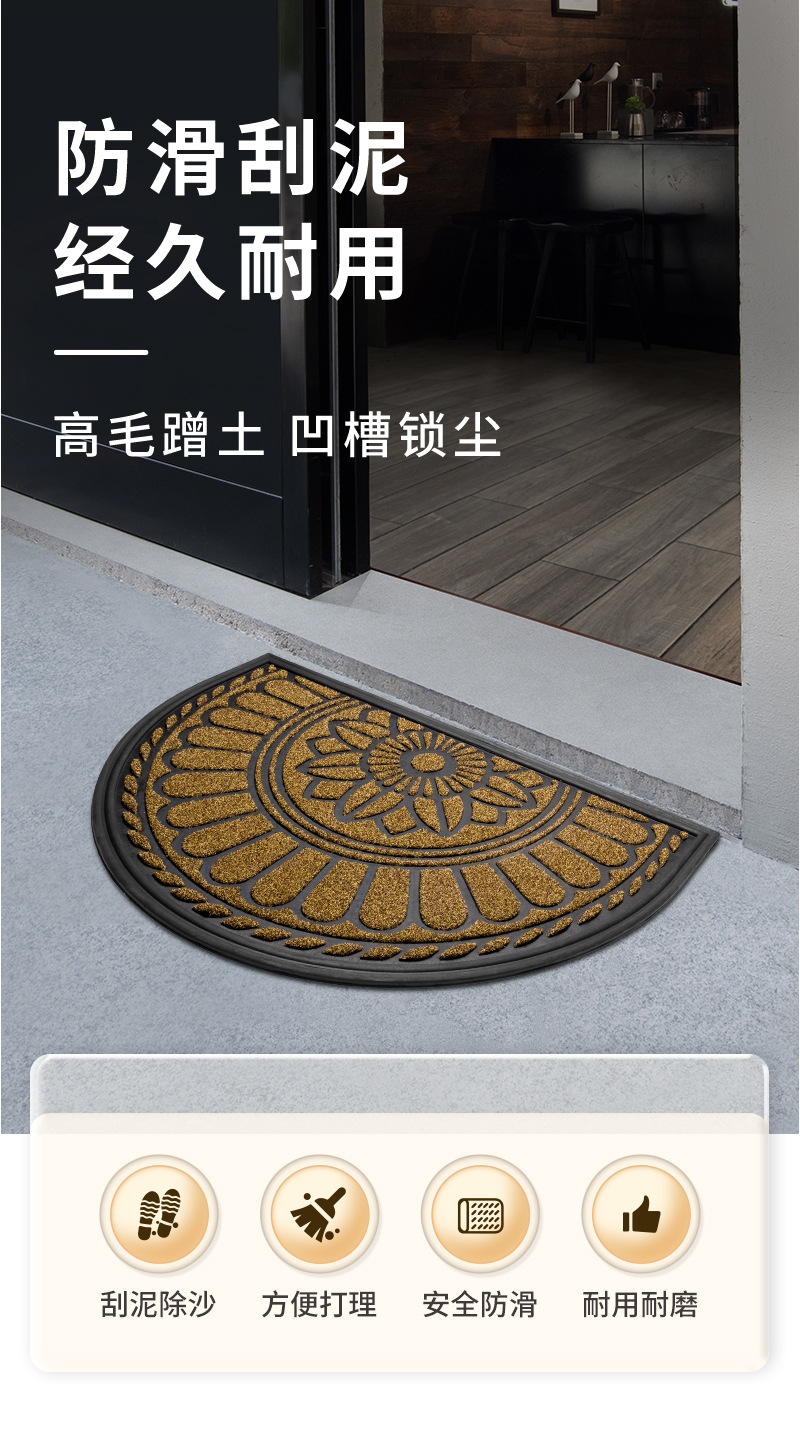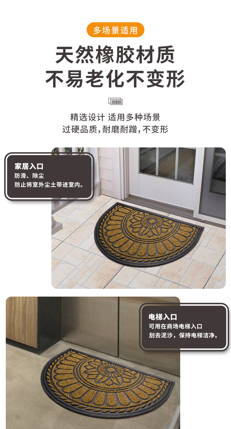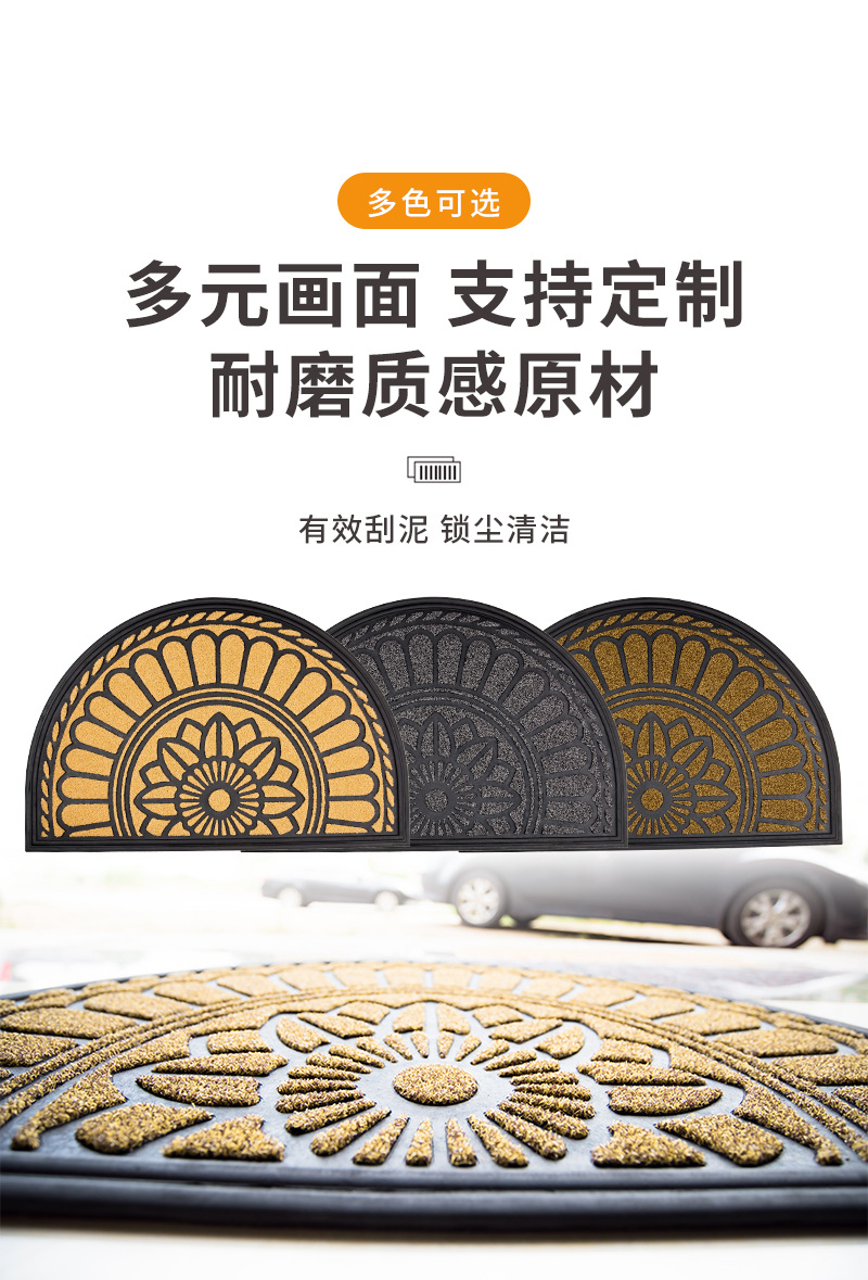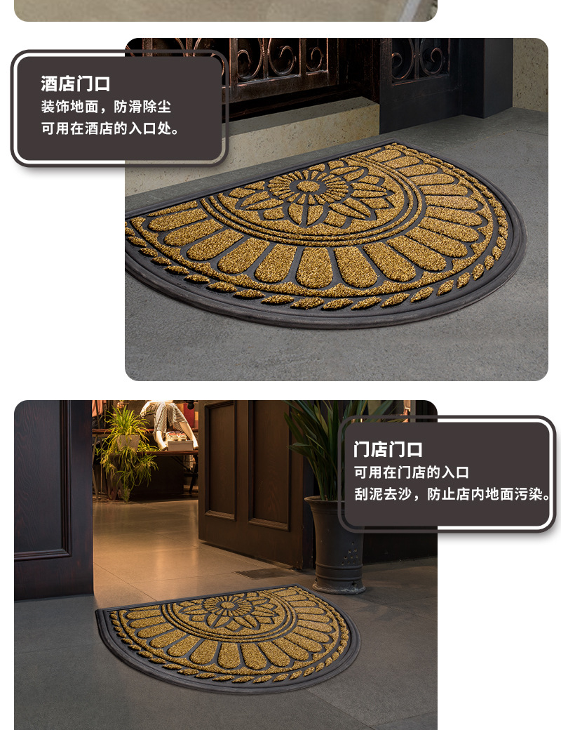국경 간 도매 유럽 스타일 입구 문 반원형 고무 바닥 매트, 얼룩 방지 및 관리하기 쉬운 카펫, 집 입구 미끄럼 방지 매트