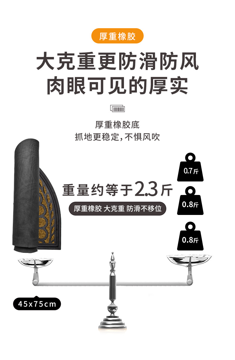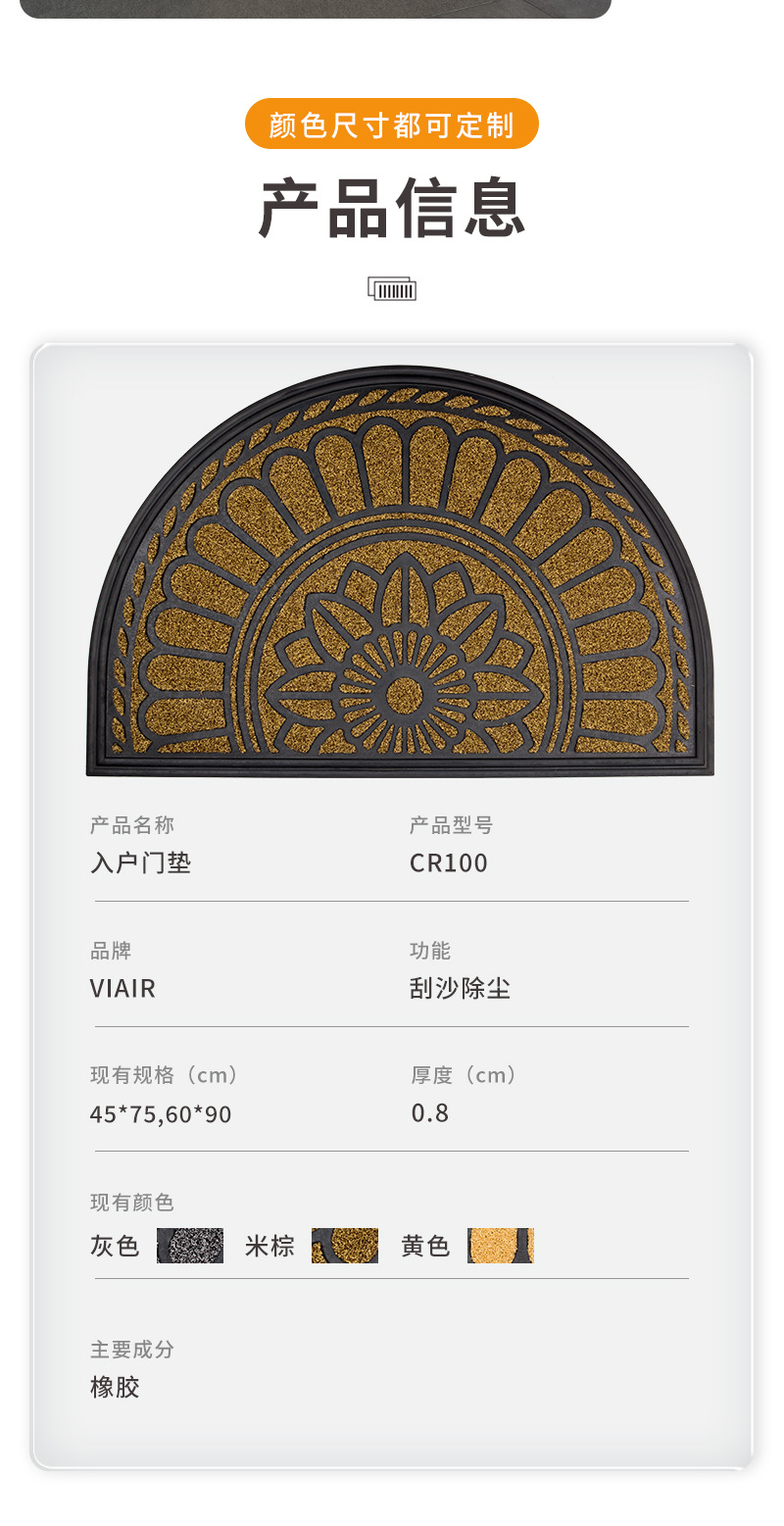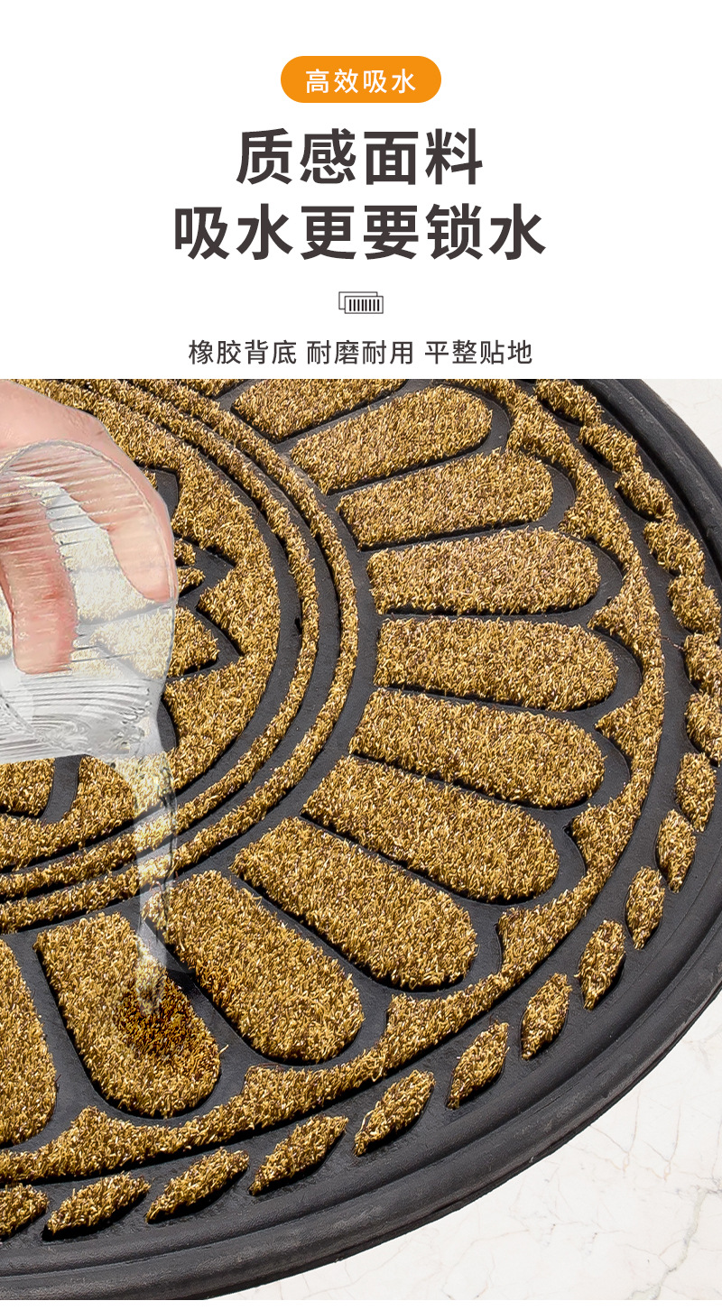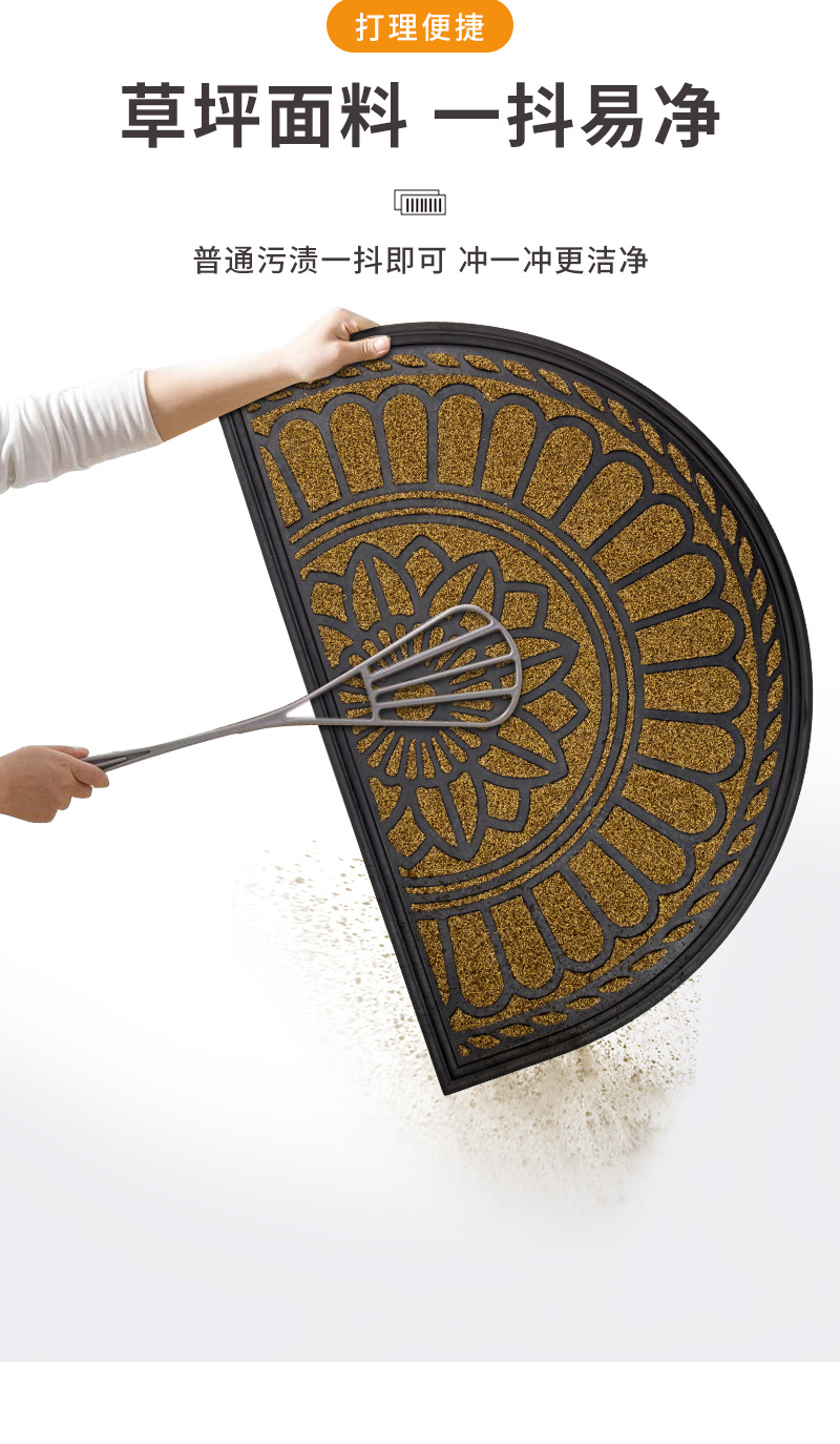 국경 간 도매 유럽 스타일 입구 문 반원형 고무 바닥 매트, 얼룩 방지 및 관리하기 쉬운 카펫, 집 입구 미끄럼 방지 매트