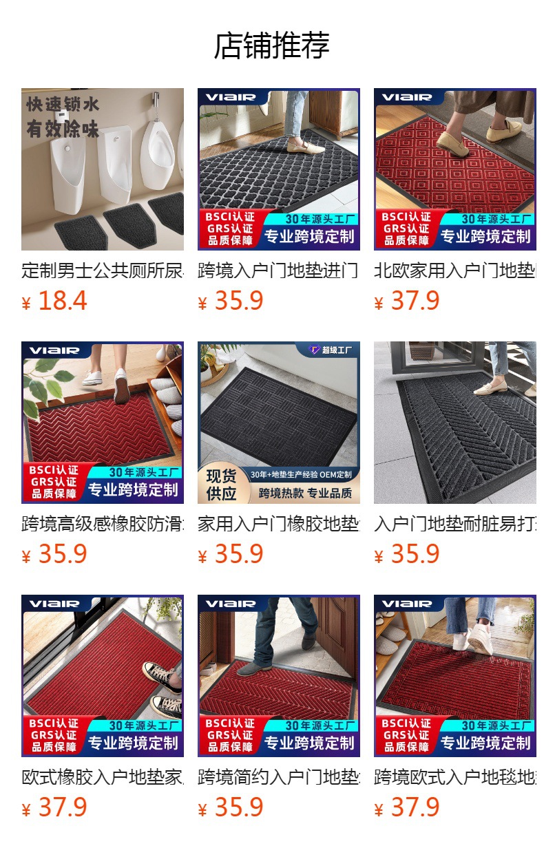 국경 간 도매 유럽 스타일 입구 문 반원형 고무 바닥 매트, 얼룩 방지 및 관리하기 쉬운 카펫, 집 입구 미끄럼 방지 매트스토어 가기