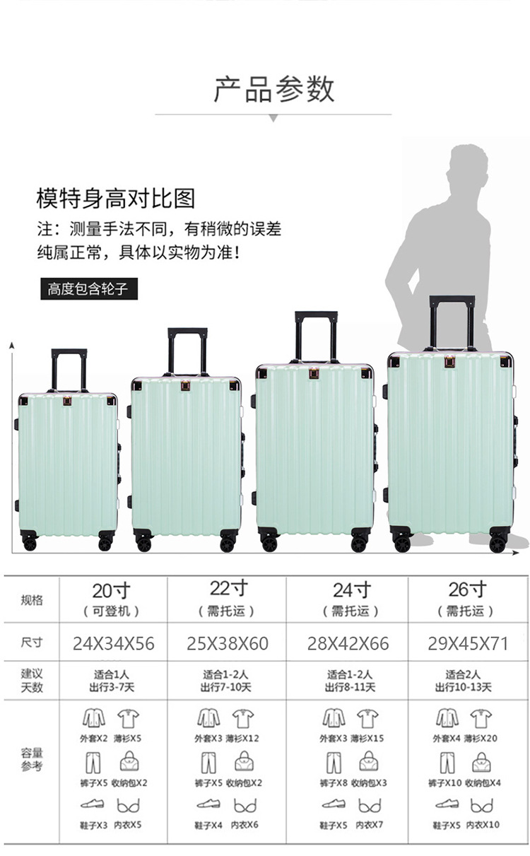 학생 알루미늄 프레임 수하물 제조업체 생산 트롤리 케이스 유니버설 휠 20 인치 22 인치 24 인치 26 인치 28 인치 수하물 케이스스토어 가기