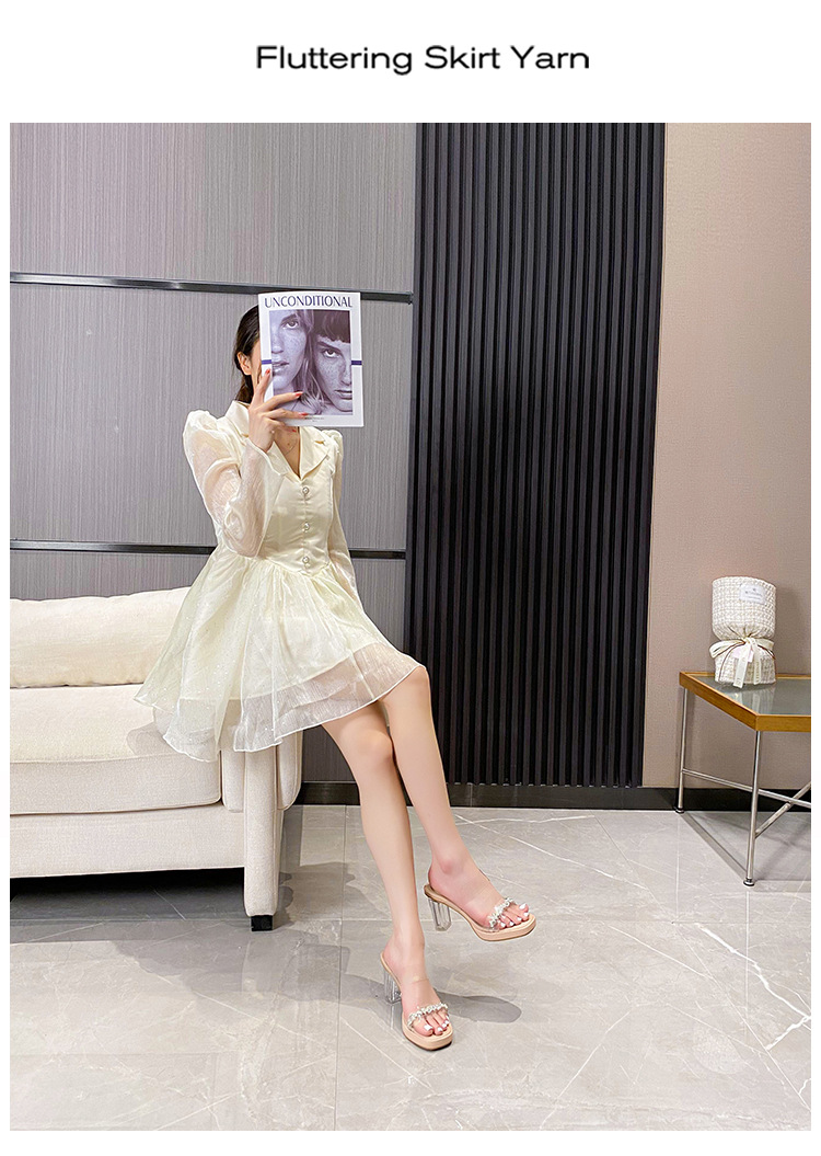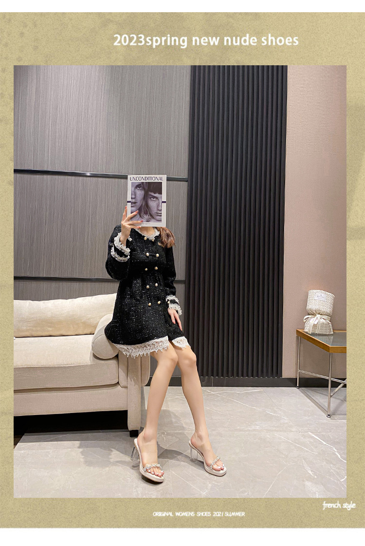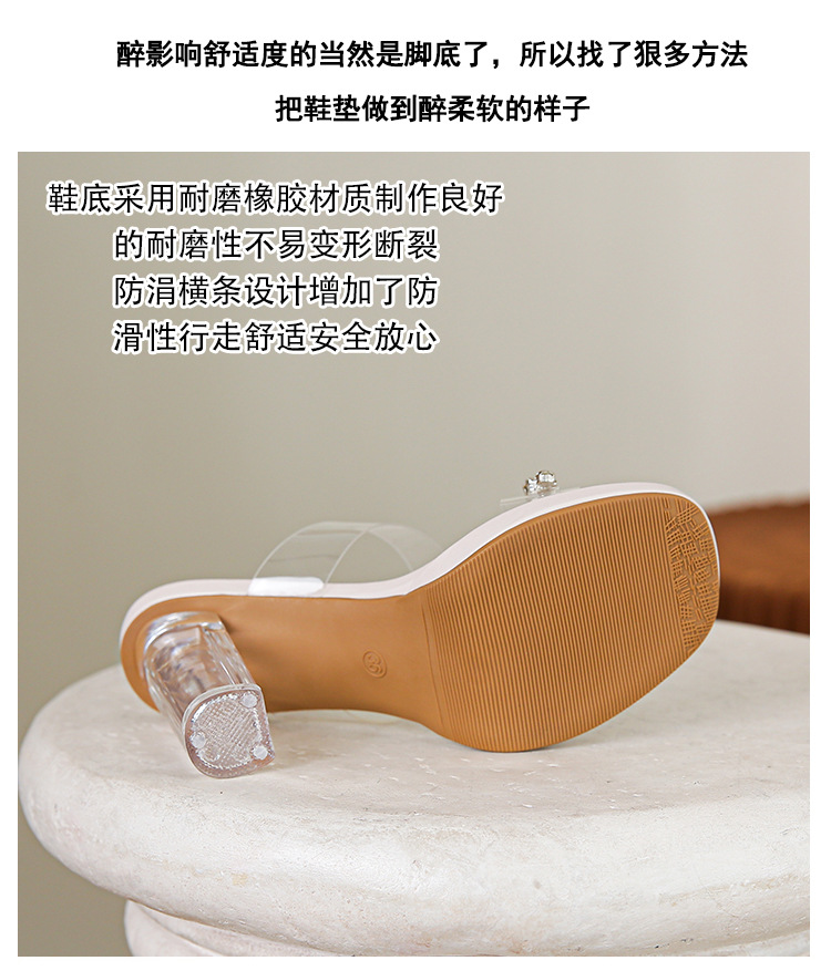 2023 여름 새로운 스타일 슬리퍼 하이힐 방수 플랫폼 크리스탈 두꺼운 굽 중간 굽 스몰 사이즈 투명 샌들 여성용스토어 가기