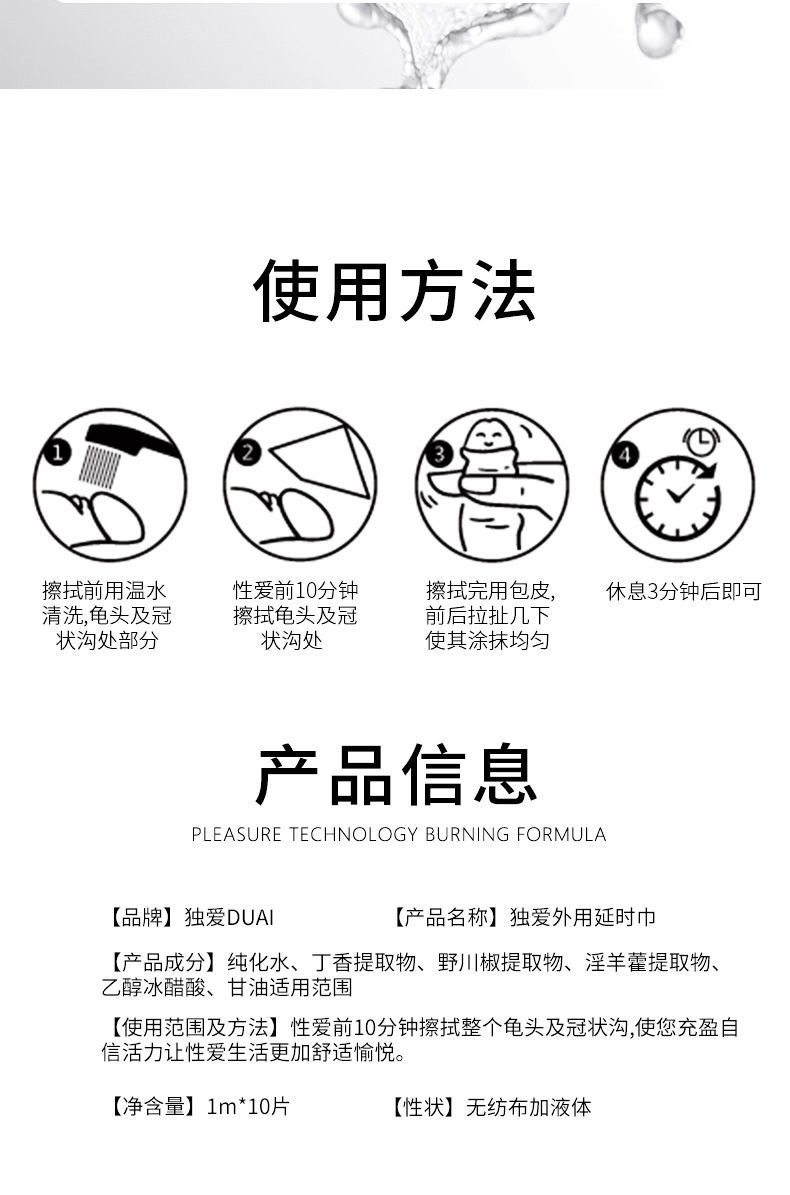 Duai 물티슈 10 개 남성용 외부 물티슈 성인 제품 도매 세대