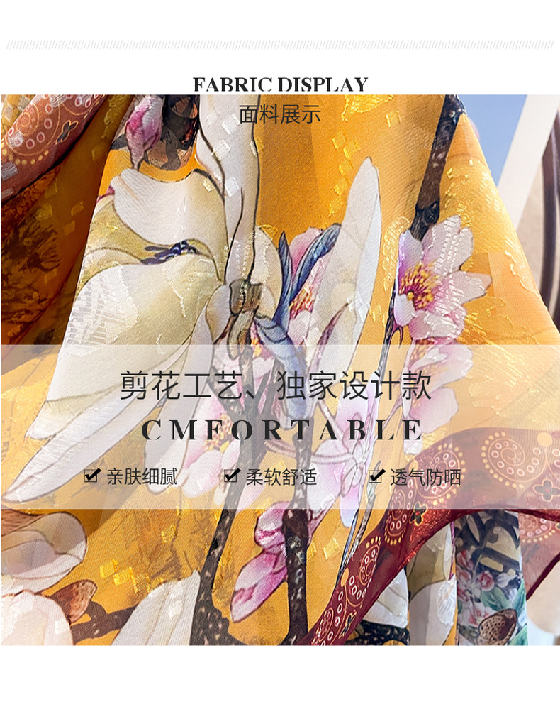 Xiangyun 원사 레트로 Guofeng 스카프 여자의 새로운 인쇄 큰 사각 스카프 숄 우아한 패션 실크 컷 스카프