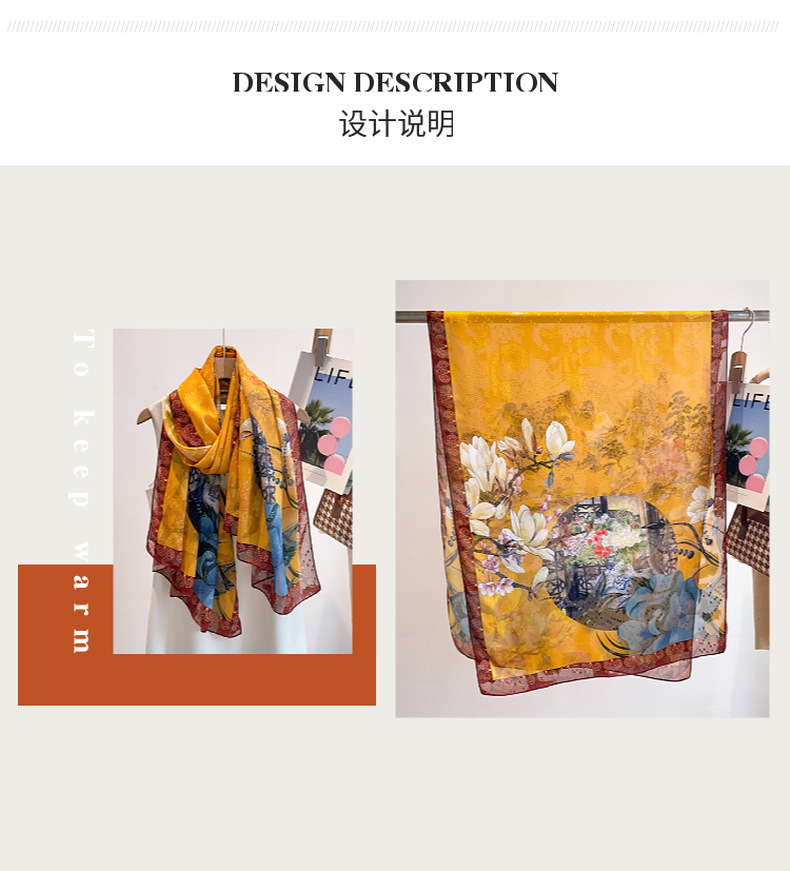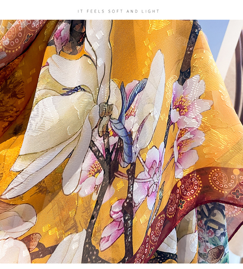 Xiangyun 원사 레트로 Guofeng 스카프 여자의 새로운 인쇄 큰 사각 스카프 숄 우아한 패션 실크 컷 스카프스토어 가기