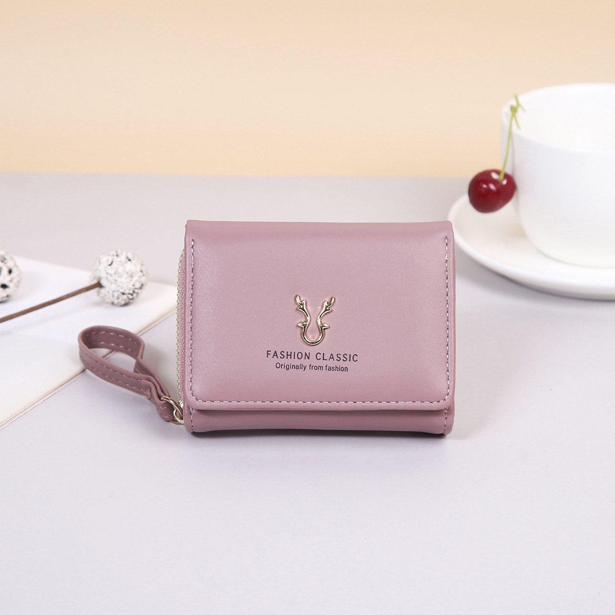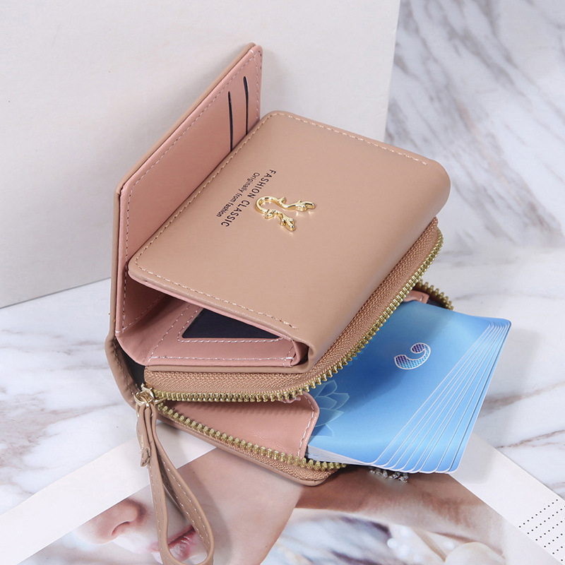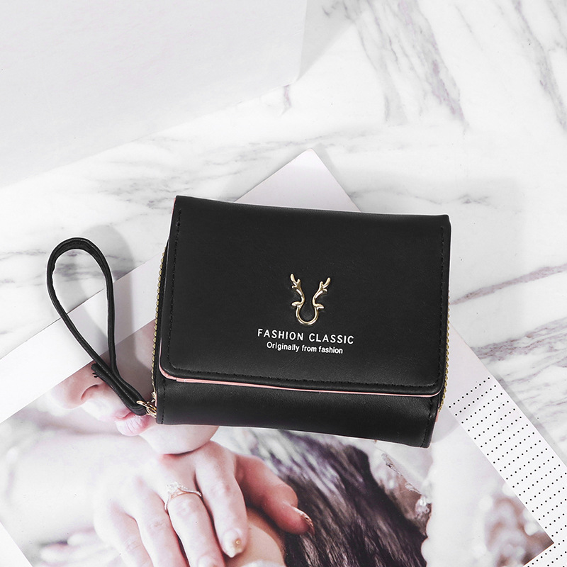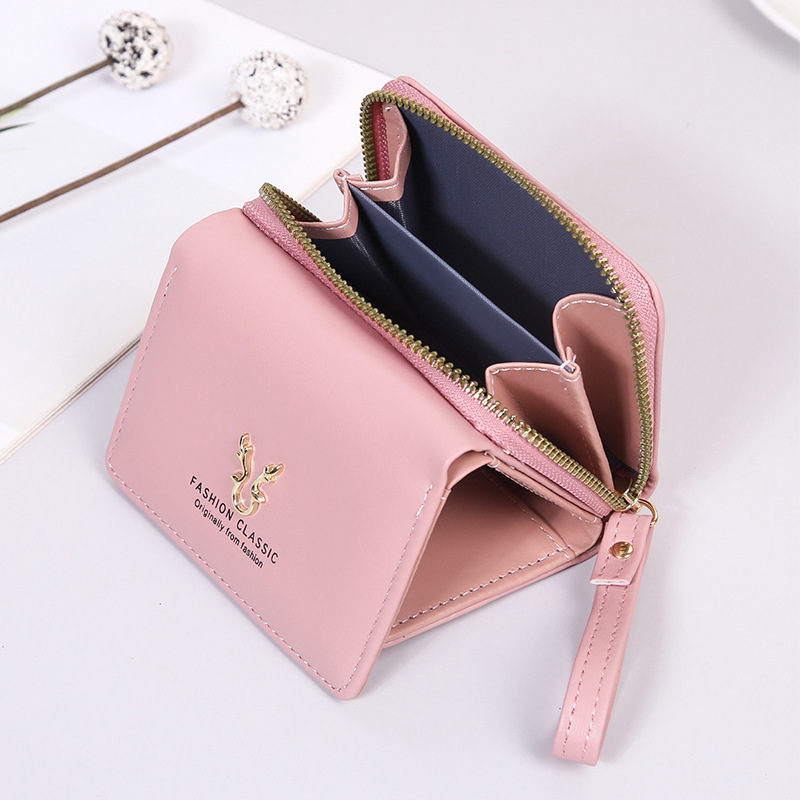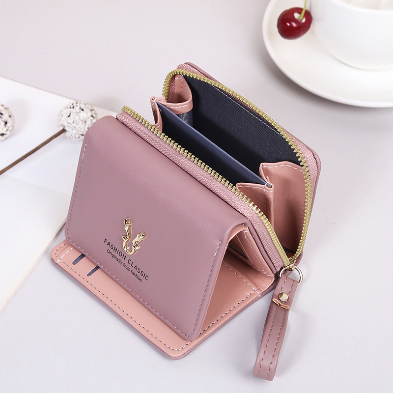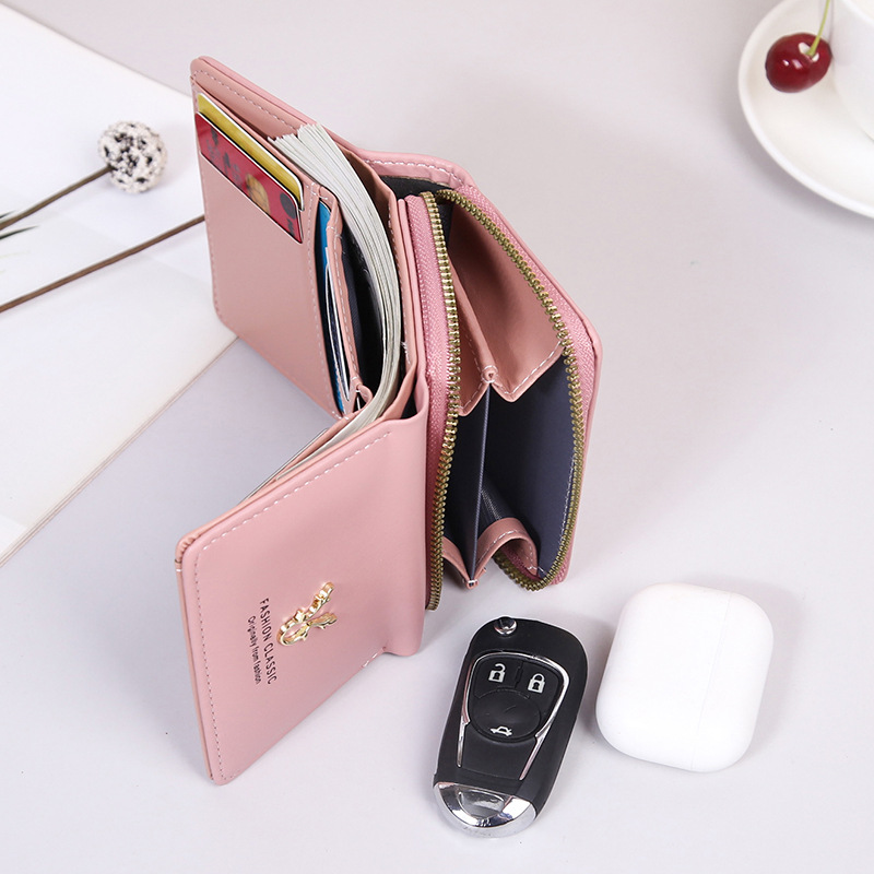 여성용 핸드백 지갑 경량 짧은 뿔 지갑 미니 카드 가방 동전 지갑 투인원 패션 3 중 지갑
