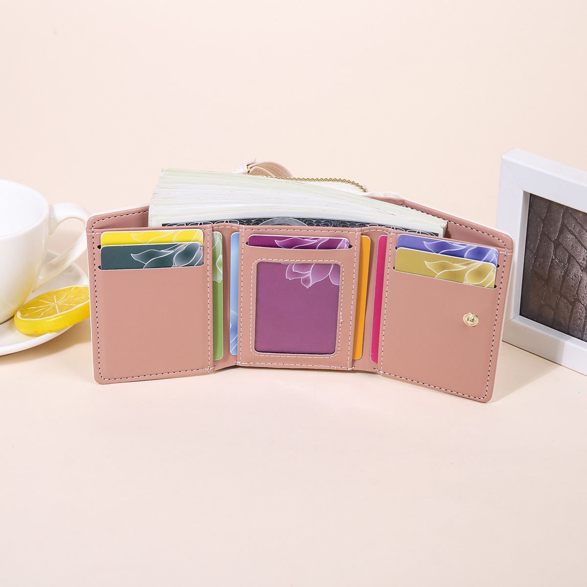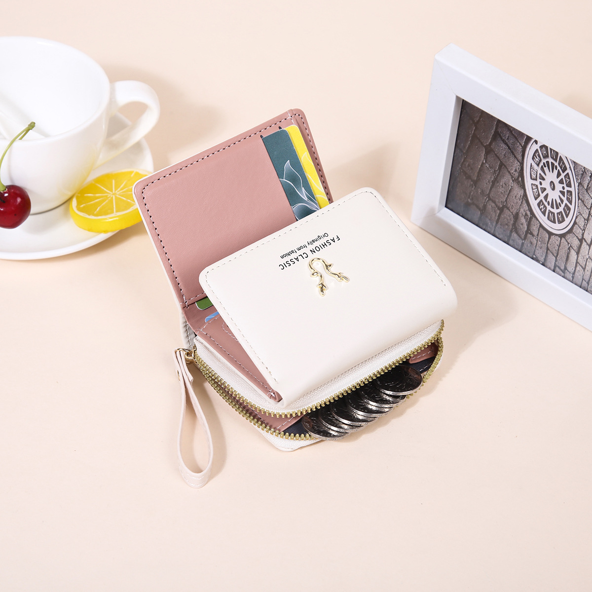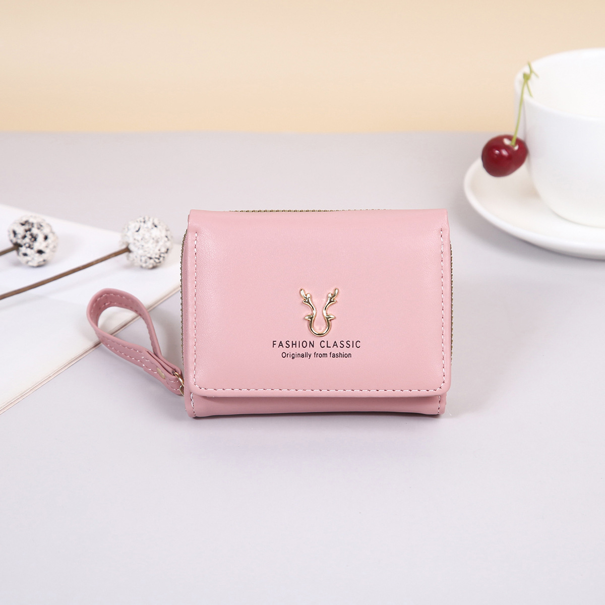 여성용 핸드백 지갑 경량 짧은 뿔 지갑 미니 카드 가방 동전 지갑 투인원 패션 3 중 지갑