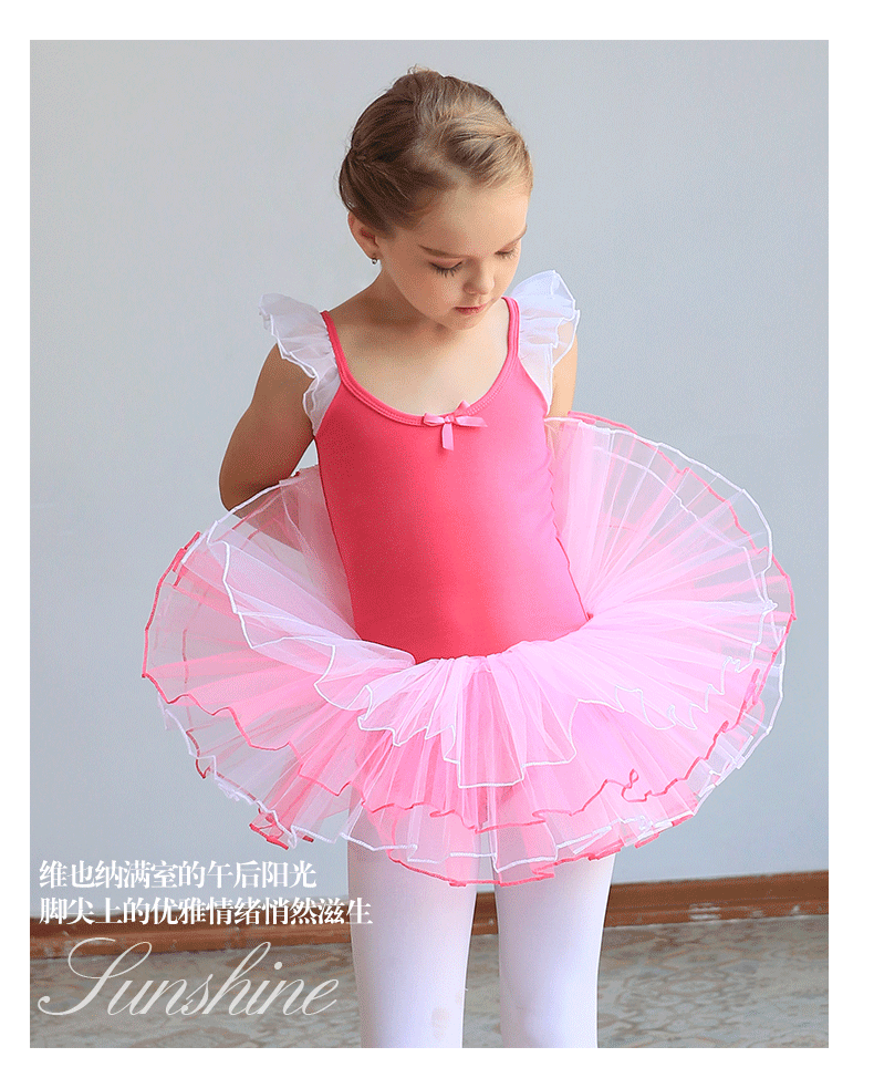 어린이 춤 세트 여름 반팔 어린이 춤 성능 세트 푹신한 베일 스커트 여아 연습 세트 발레 스커트스토어 가기