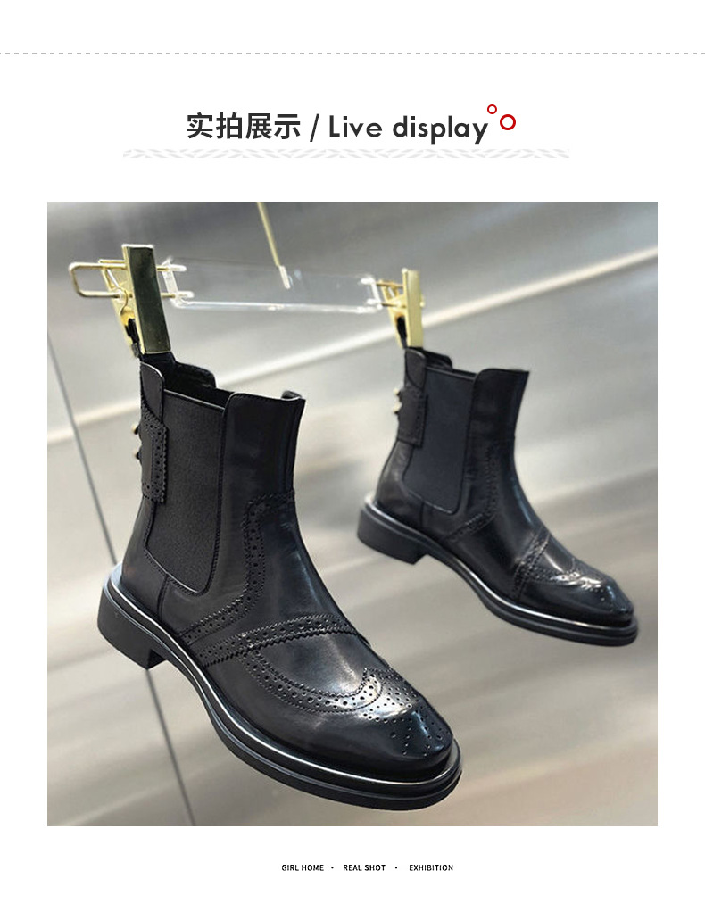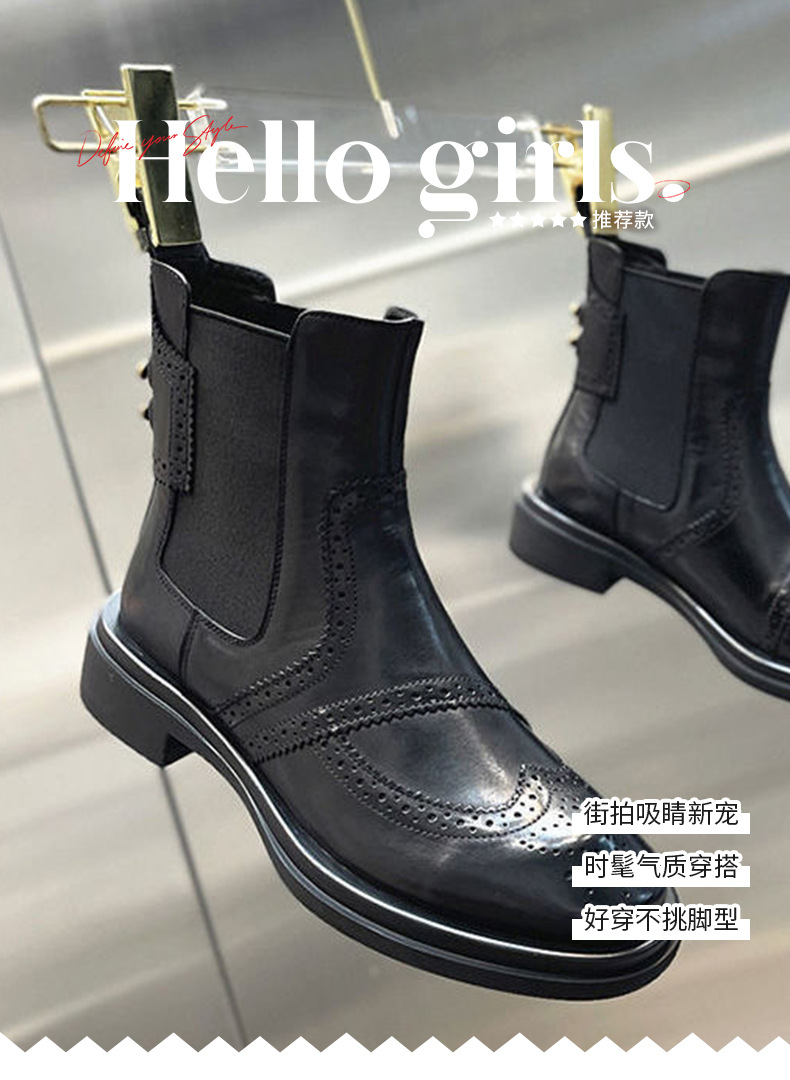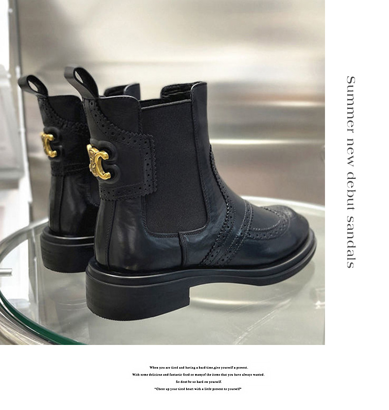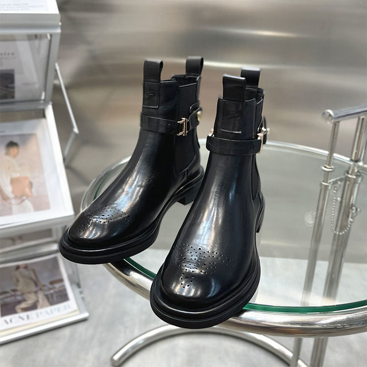 첼시 앵클 부츠 여성용 2023 유럽 봄과 가을 새로운 에나멜 가죽 플랫 레트로 거위 머리 소가죽 마틴 부츠스토어 가기