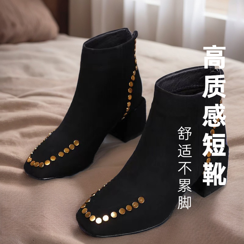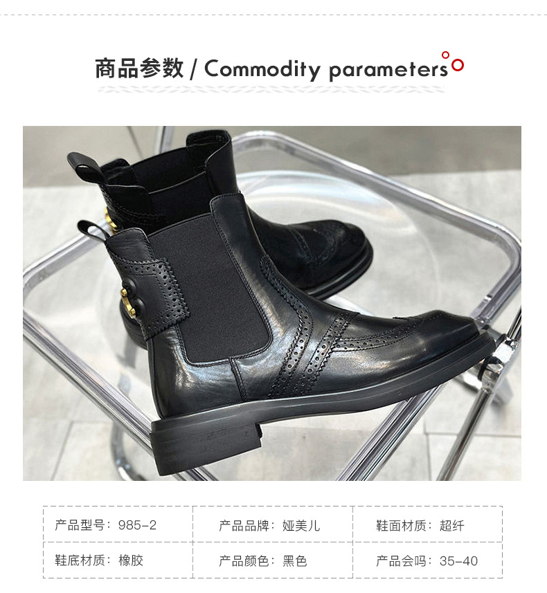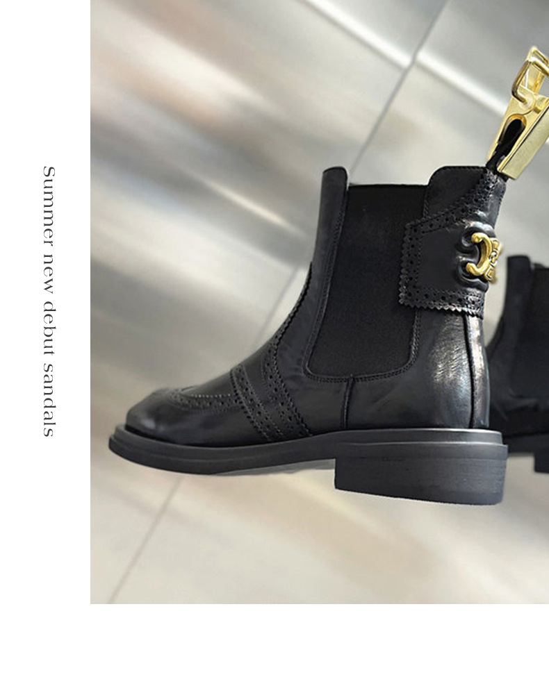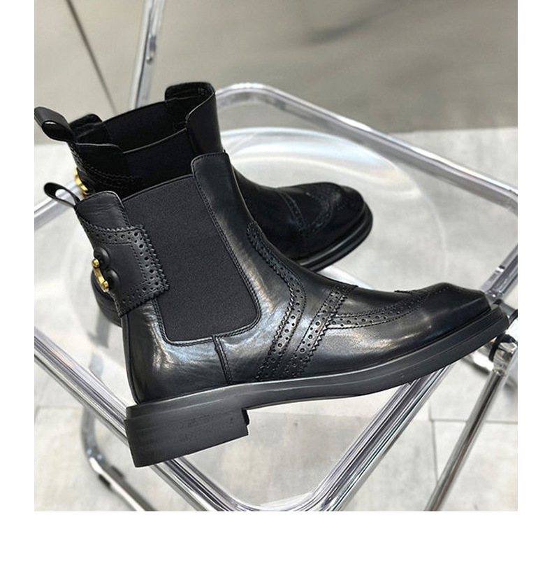 첼시 앵클 부츠 여성용 2023 유럽 봄과 가을 새로운 에나멜 가죽 플랫 레트로 거위 머리 소가죽 마틴 부츠