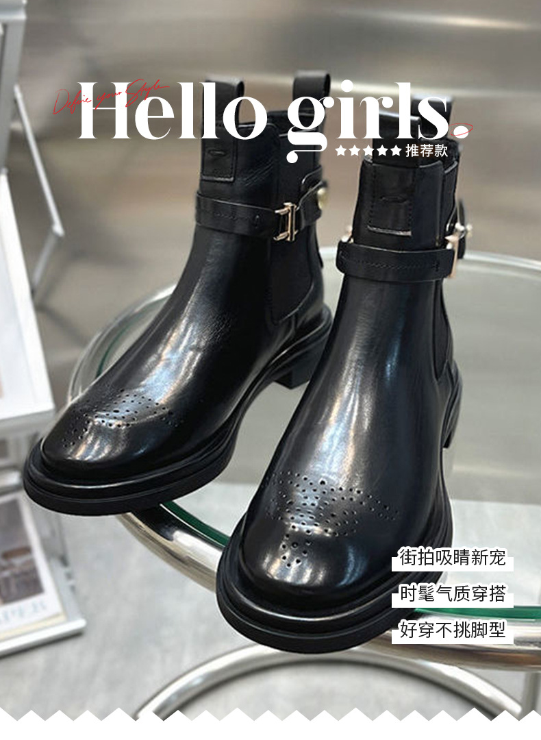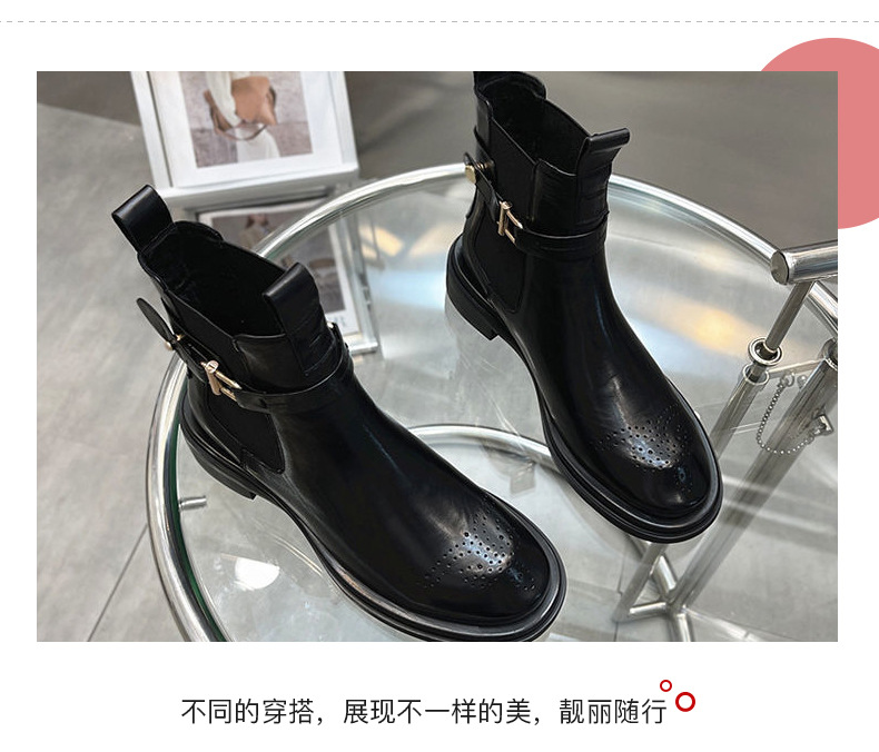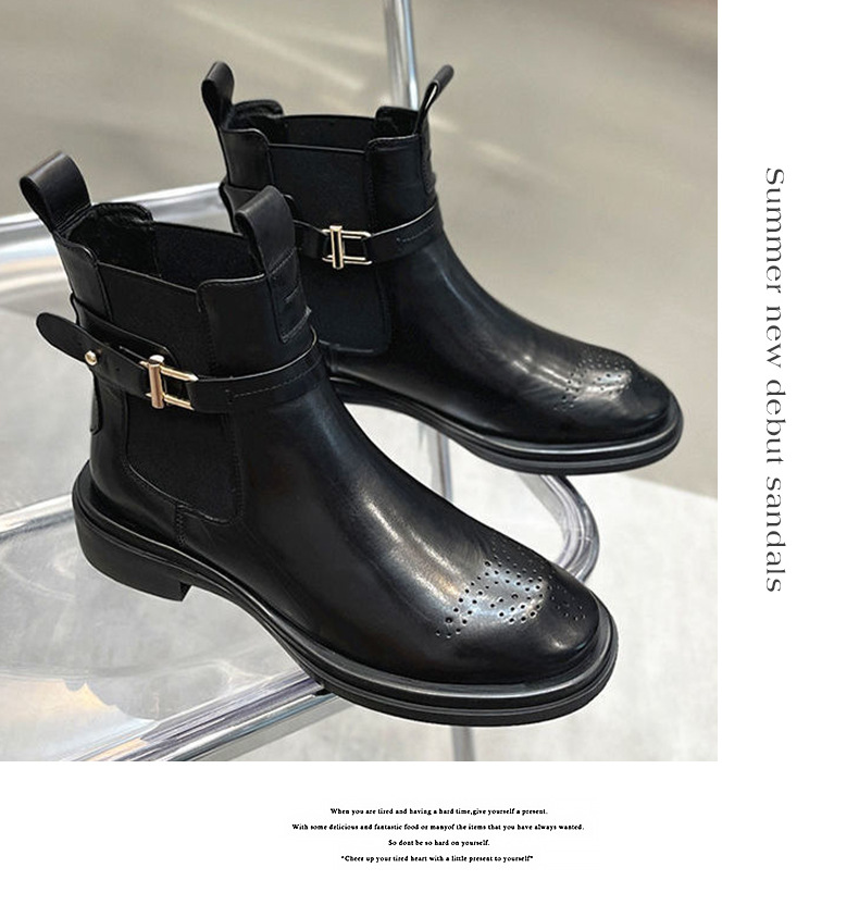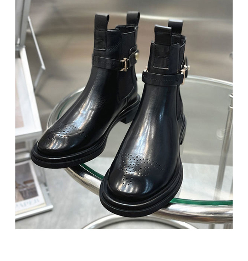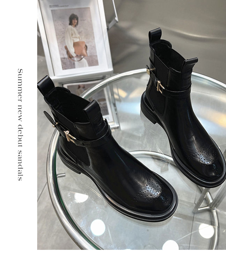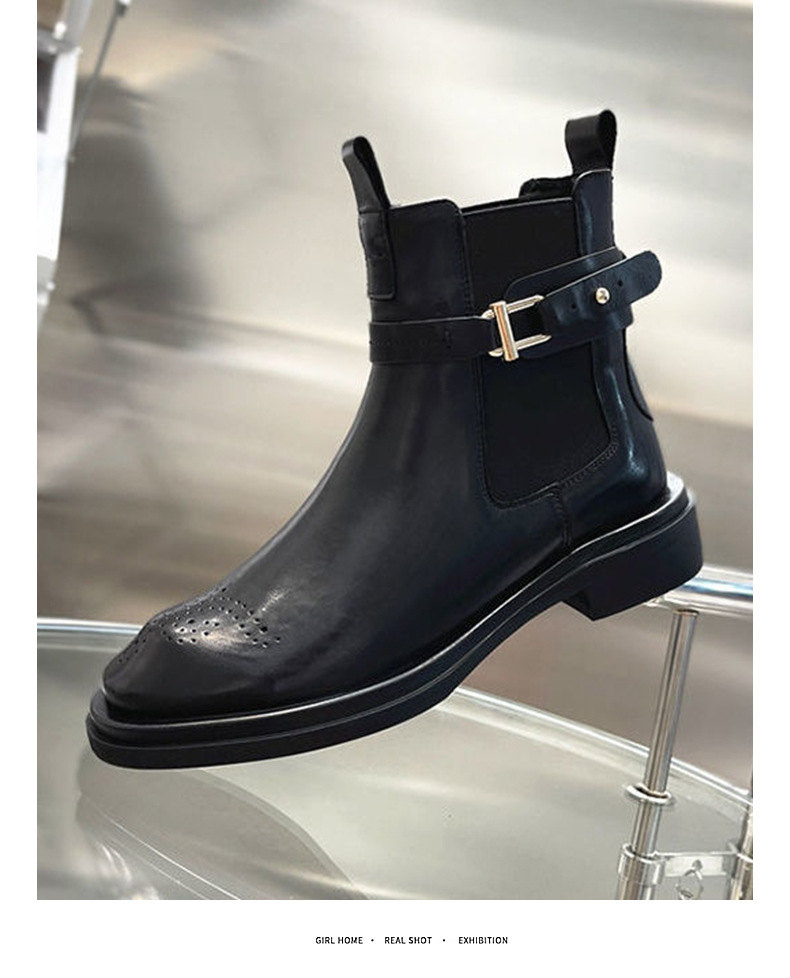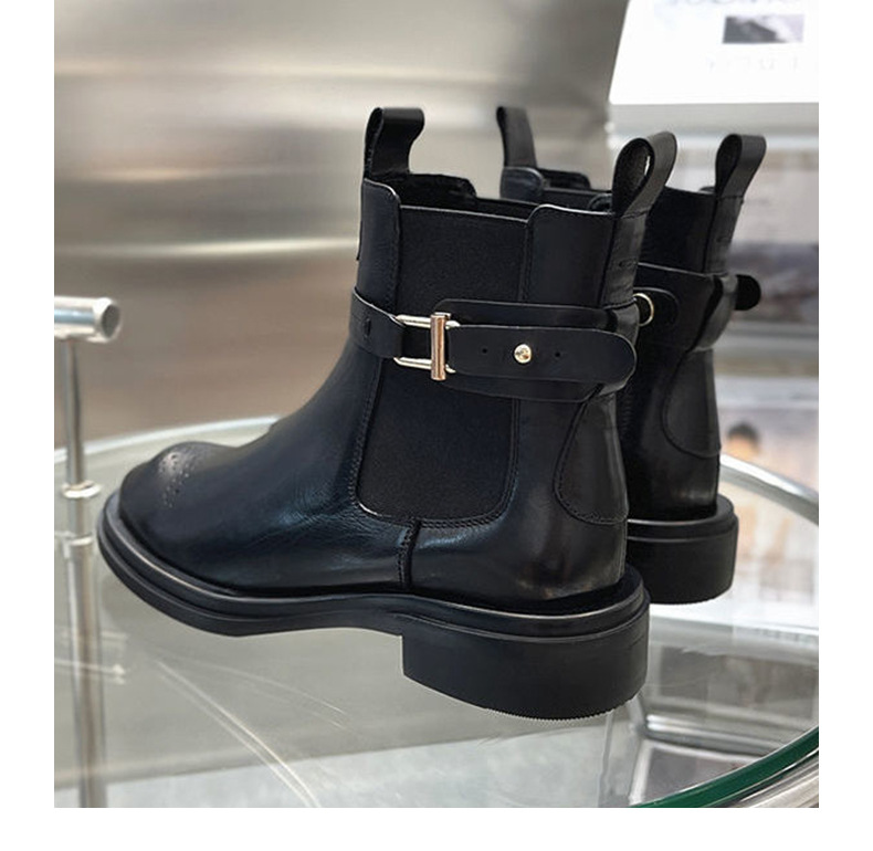 빈티지 첼시 앵클 부츠 여성용 2023 봄 가을 신상품 에나멜 가죽 거위 머리 조각 플랫 싱글 부츠 소가죽 마틴 부츠스토어 가기