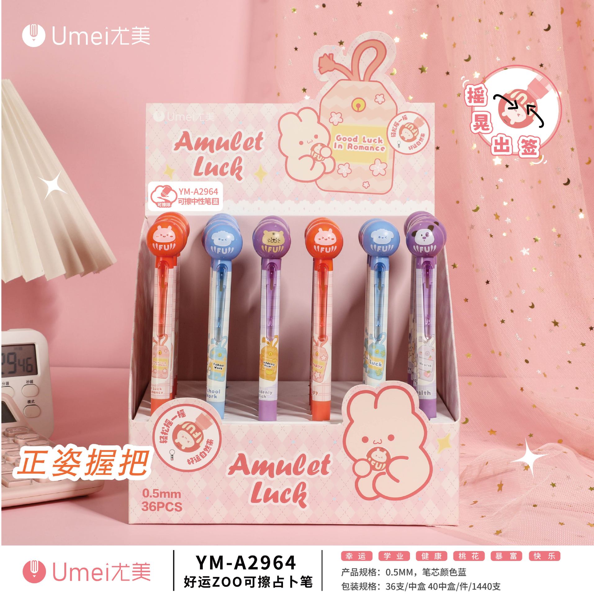 • 블루 YM2964 좋은 행운 지우기 펜 1 [36 PCs/box]