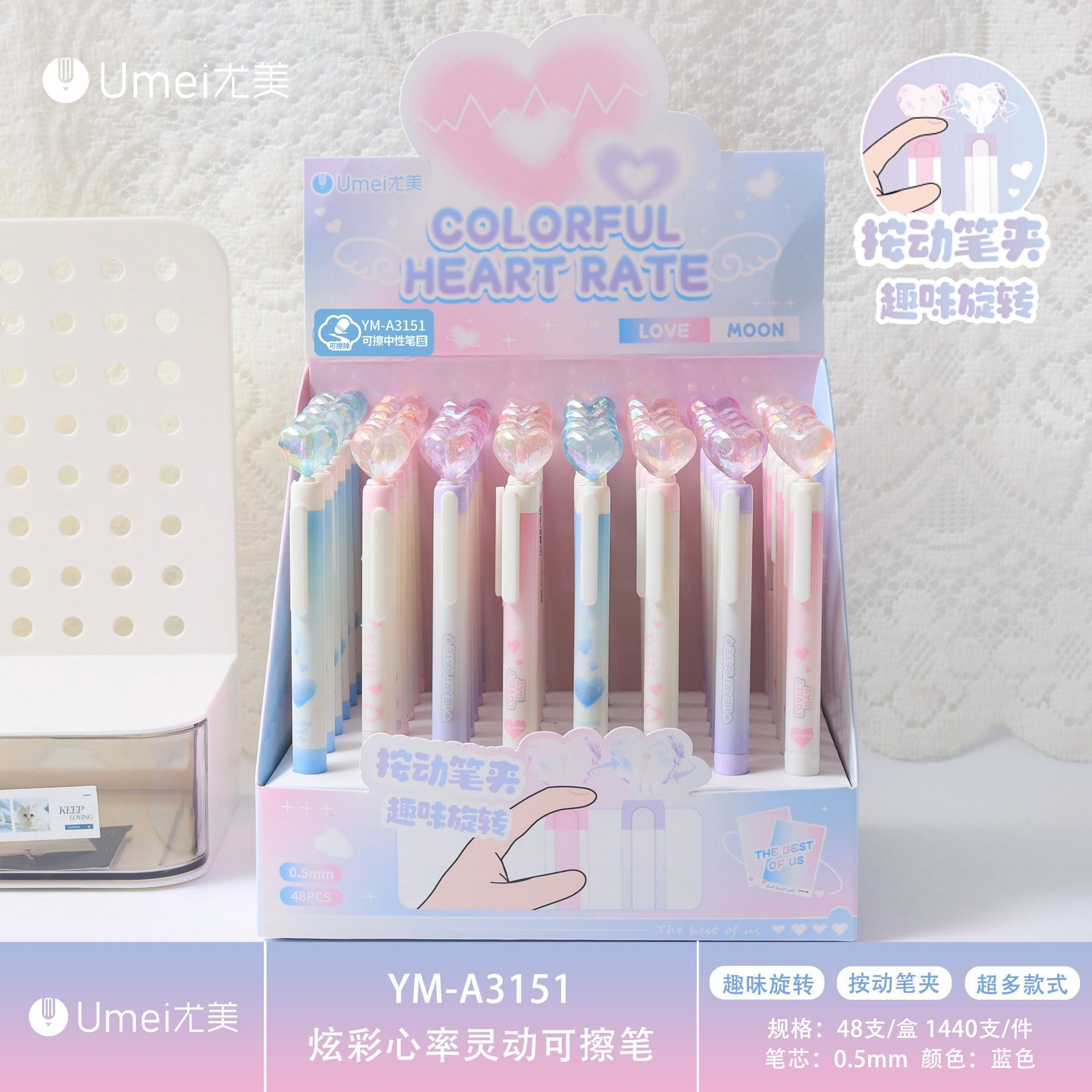 • 블루 YM3151 컬러풀 심박수 스마트 지울 수 있는 펜 1개 [48개/박스]