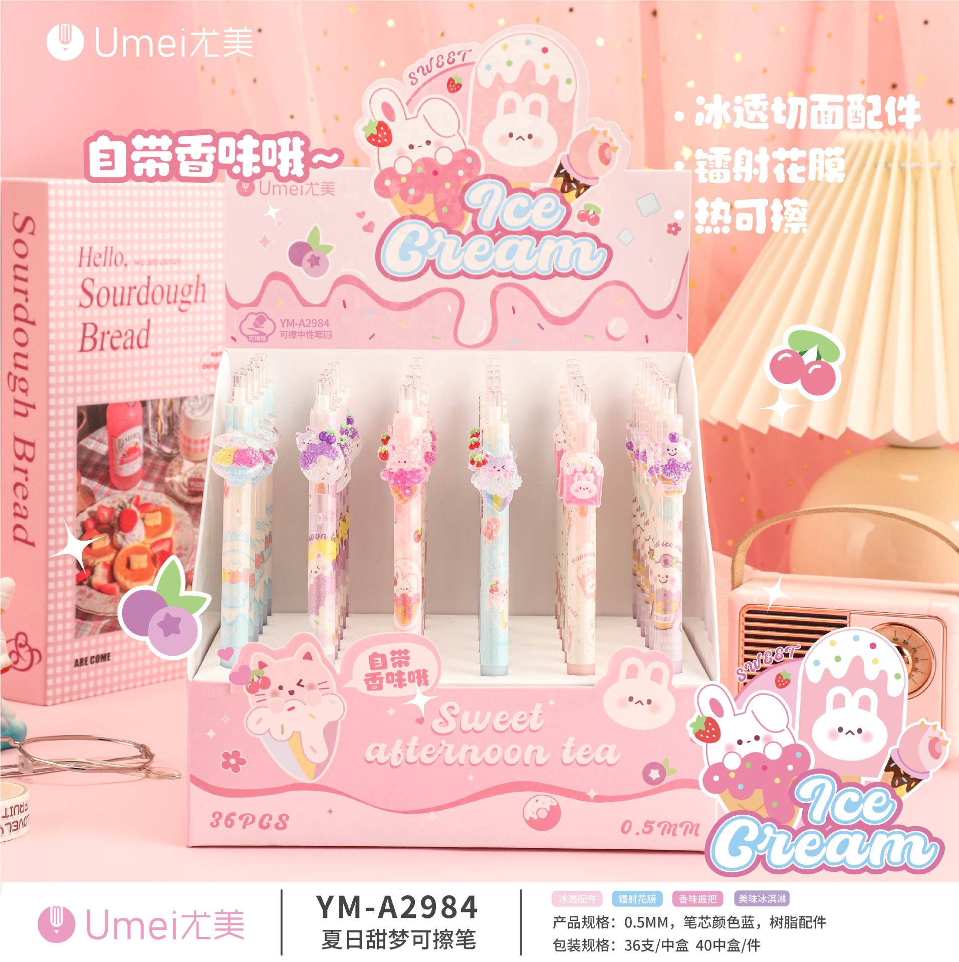 • 블루 YM2984 여름 달콤한 꿈 지울 수있는 펜 1 [36 PCs/box]