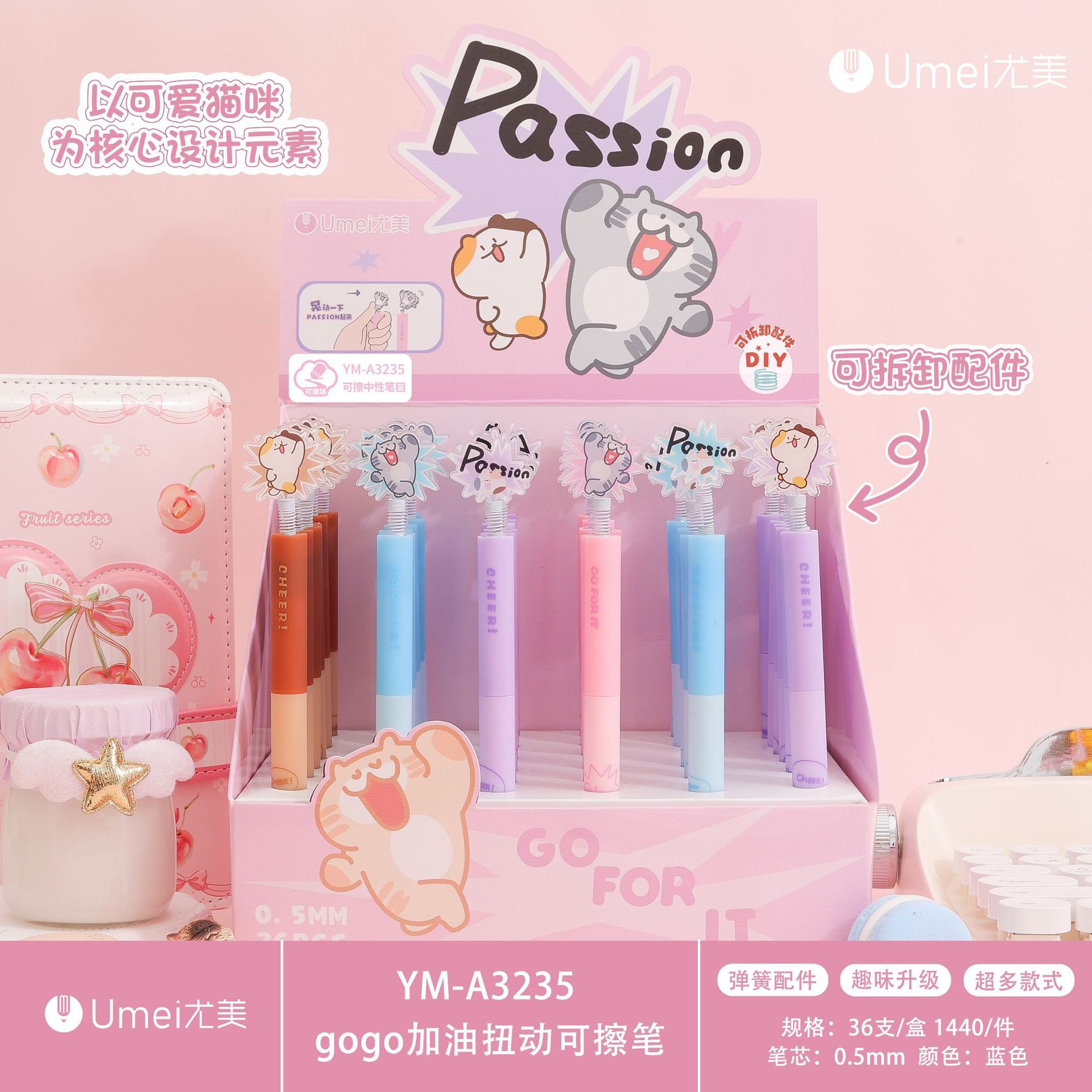 • 블루 YM3302 귀여운 고양이 지울 수 있는 펜 1개 [36개/박스]