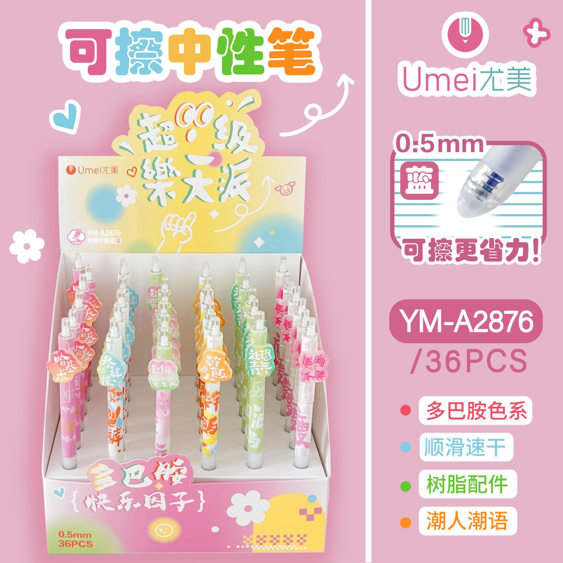 • 블루 YM3009 모든 일이 잘 되고 지울 수 있는 펜 1개 [36개/박스]