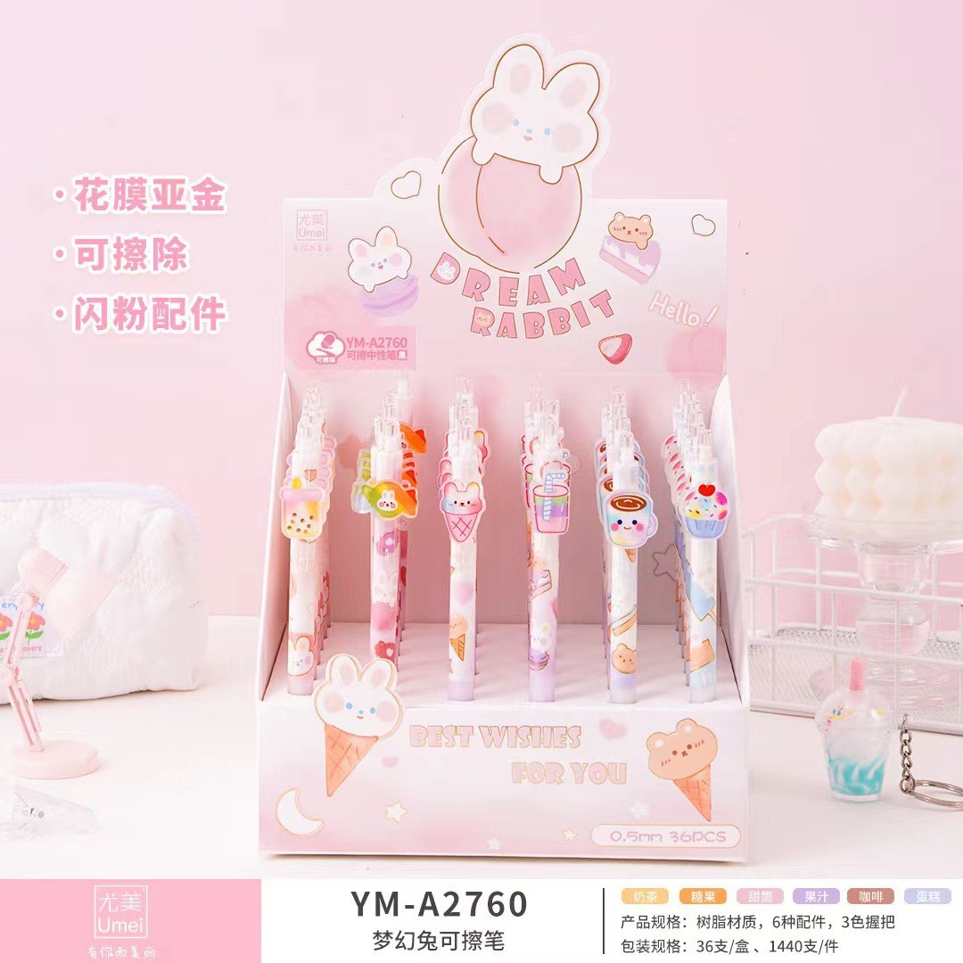 Youmei 음료 자판기 카지 쿠키 드림 래빗 산리오 하이 컬러 값 신선한 프레스 지울 수있는 젤 펜