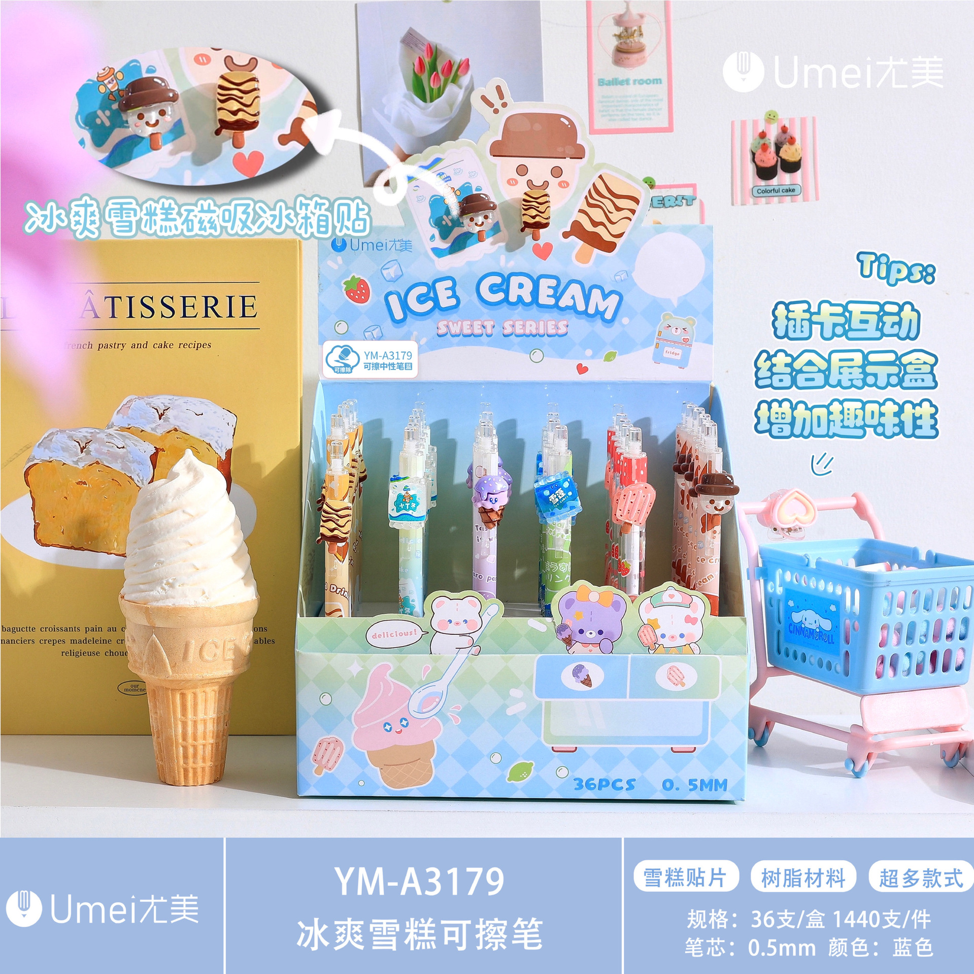 • 블루 YM2827 우유 맛 아이스크림 지울 수있는 펜 1 [36 PCs/box]