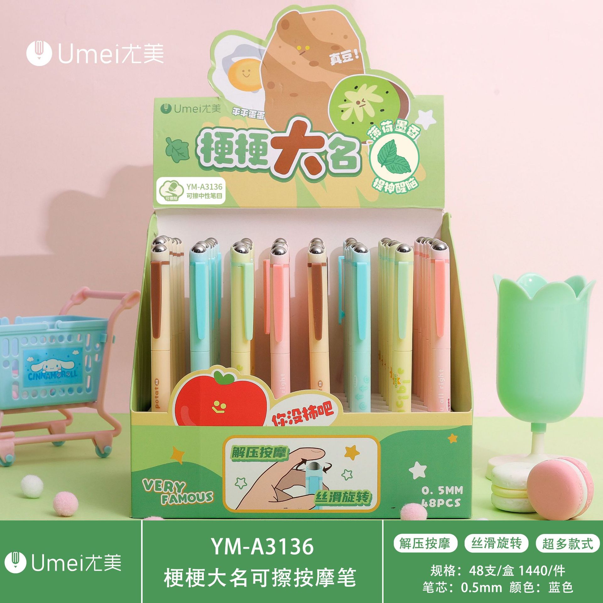• 블루 YM2994-48 돌고래 디저트 샵 1 지울 수있는 펜 [48 PCs/box]